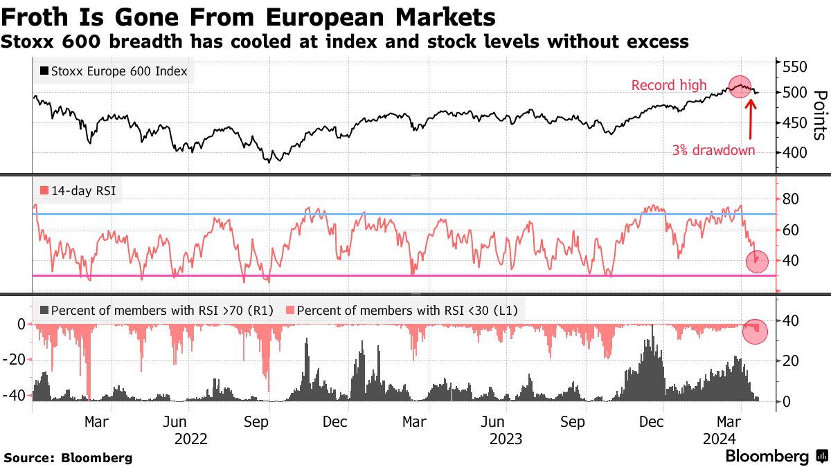 与此同时,投资者正在为盈利季的高峰做准备,同时关注各国央行的评论以评估利率前景。在欧洲央行,理事会成员弗朗索瓦·维勒罗伊·德·加尔豪表示,围绕石油市场的不确定性不会阻止6月份的首次降息。
