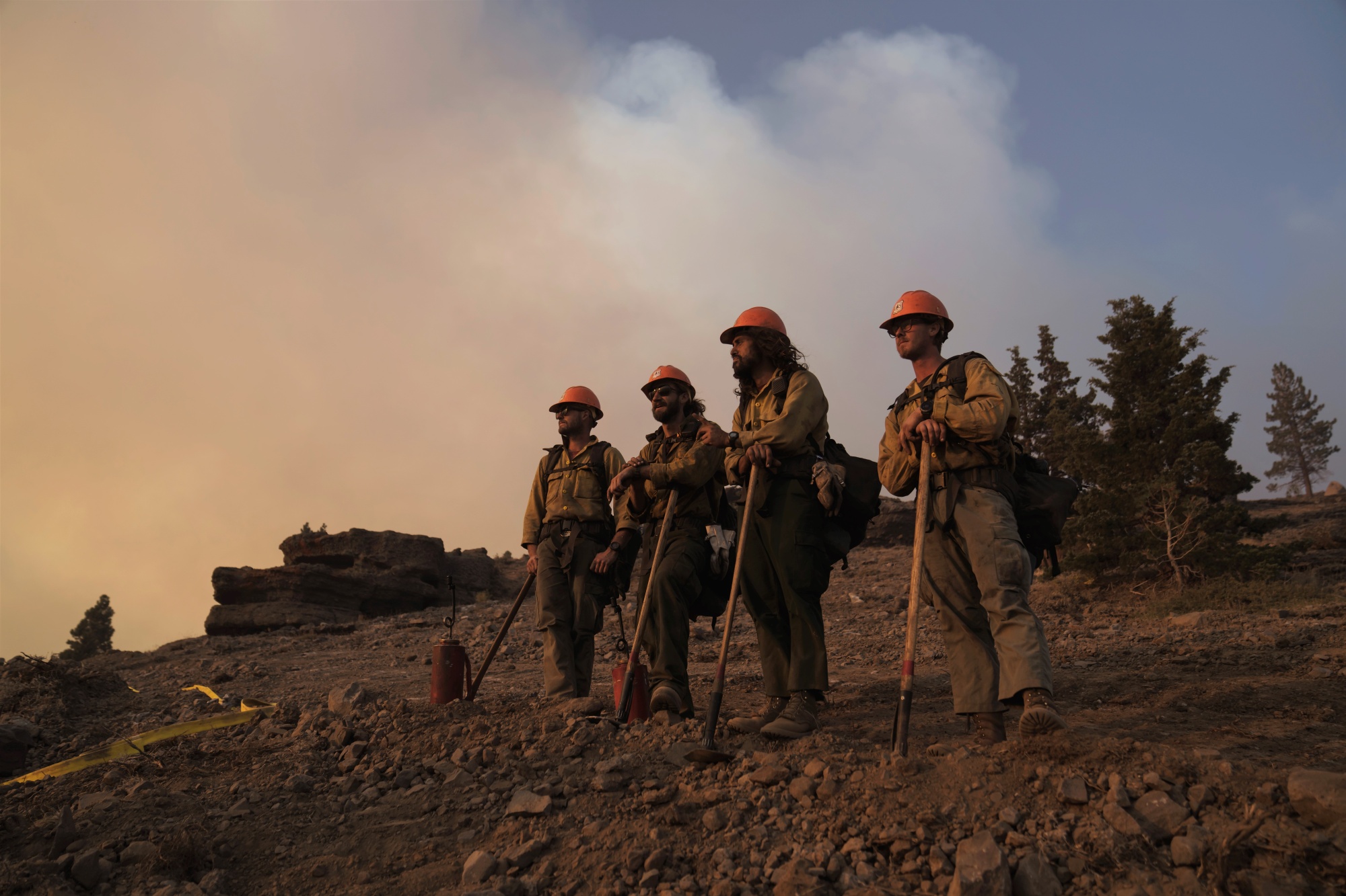 消防员在加利福尼亚柯克伍德进行控制性燃烧前等待。