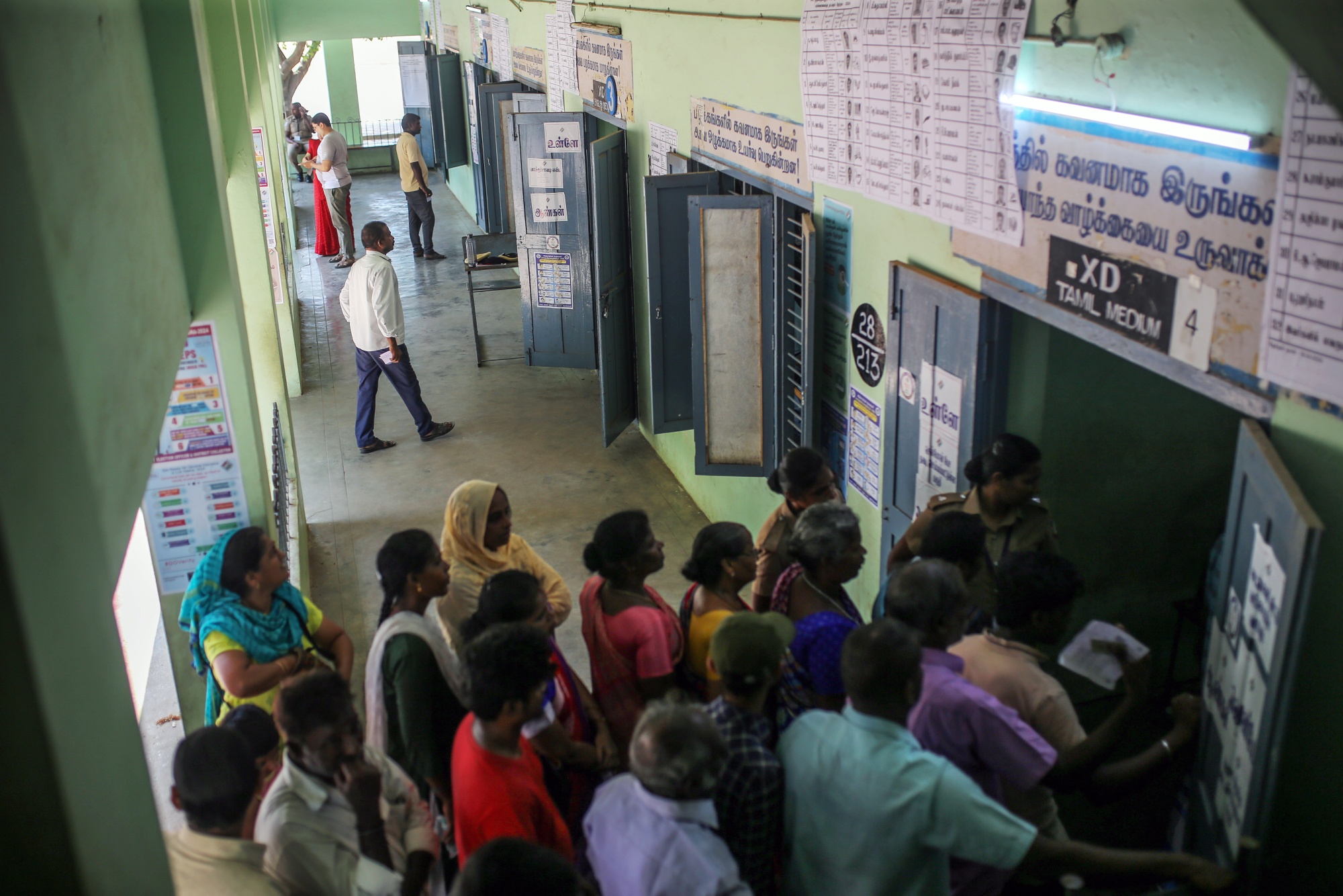 选民在4月19日在金奈的一个投票站排队投票,进行全国选举的第一阶段投票。摄影师:Dhiraj Singh/Bloomberg### 印地语心脏地带