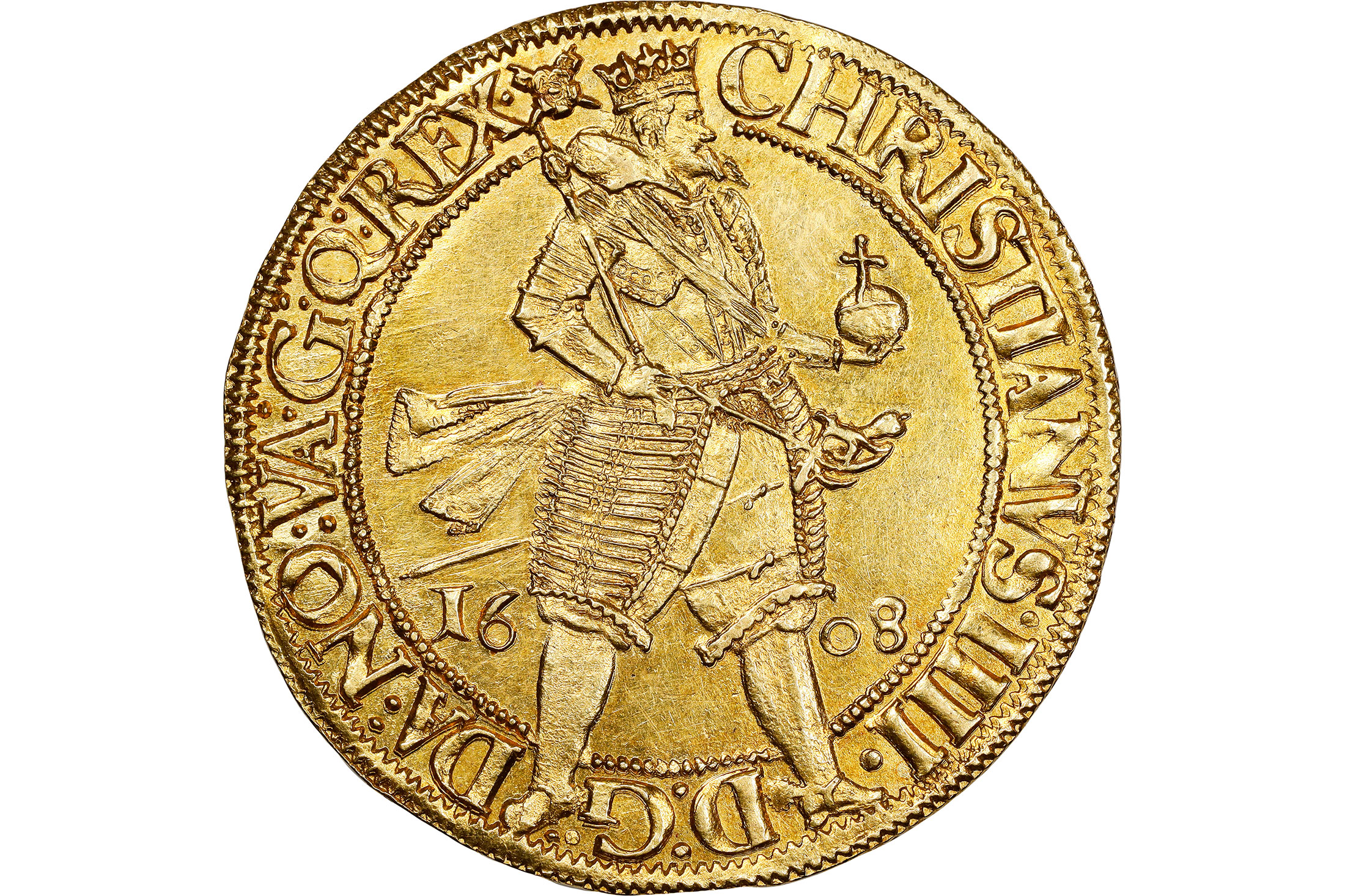 一枚丹麦国王克里斯蒂安四世于1608年的金币。