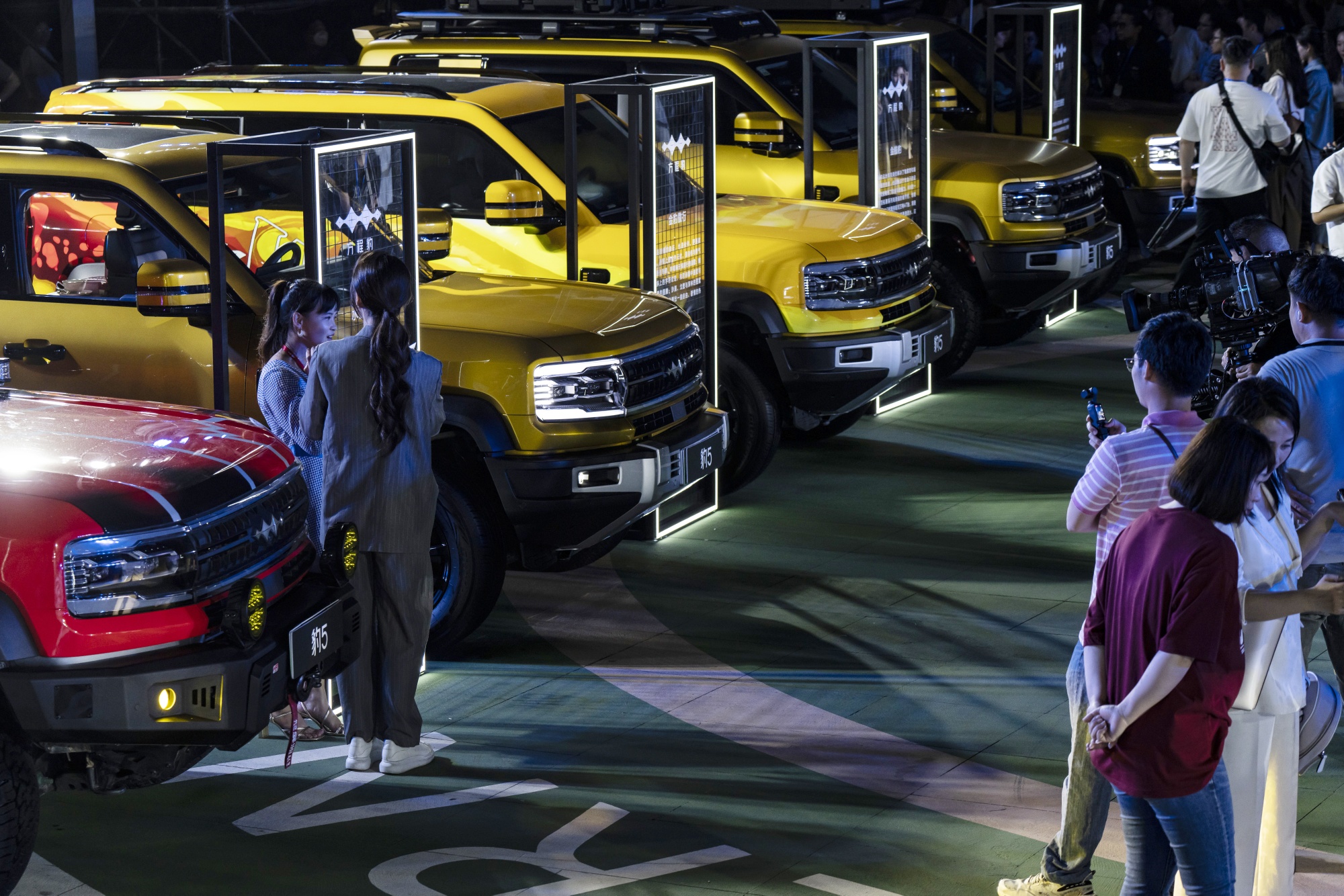 在深圳举行的媒体活动中,比亚迪方程式宝宝5款运动型多用途车。