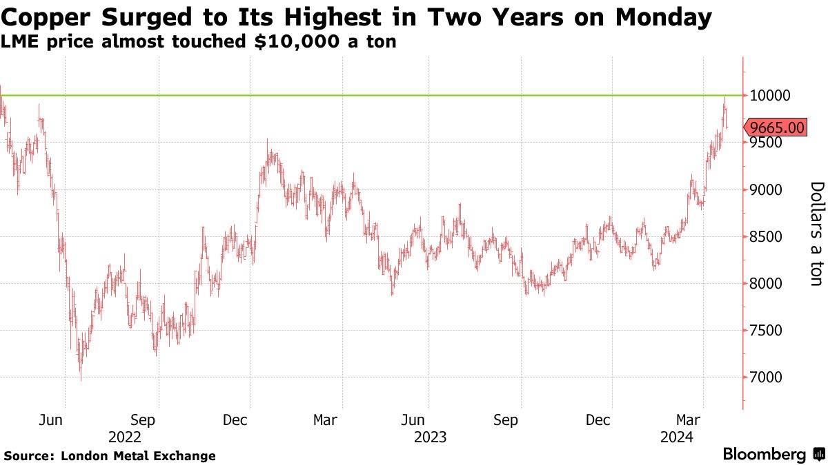 本周初,伦敦金属交易所的铜价几乎突破每吨1万美元,这一月份的飙升使预测长期大涨的多头变得更加大胆。自那时以来,铜价已经出现下跌,周一收盘较低,周二下跌了多达1.8%。