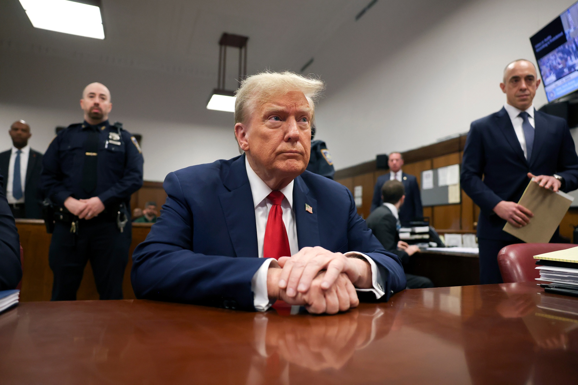 唐纳德·特朗普于4月23日在曼哈顿刑事法院出庭。