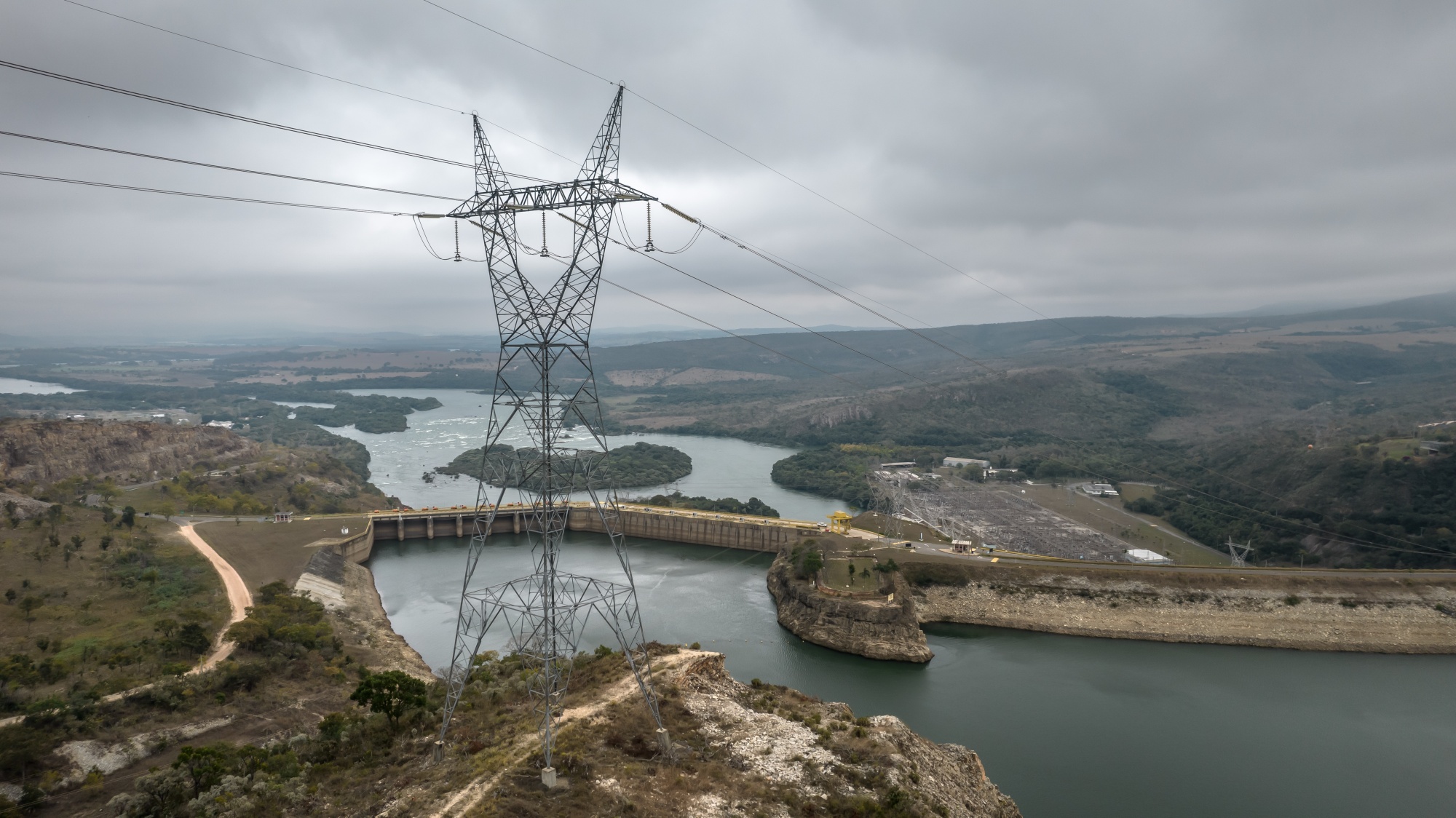 巴西富尔纳斯的Centrais Eletricas Brasileiras水电站上的电力线。