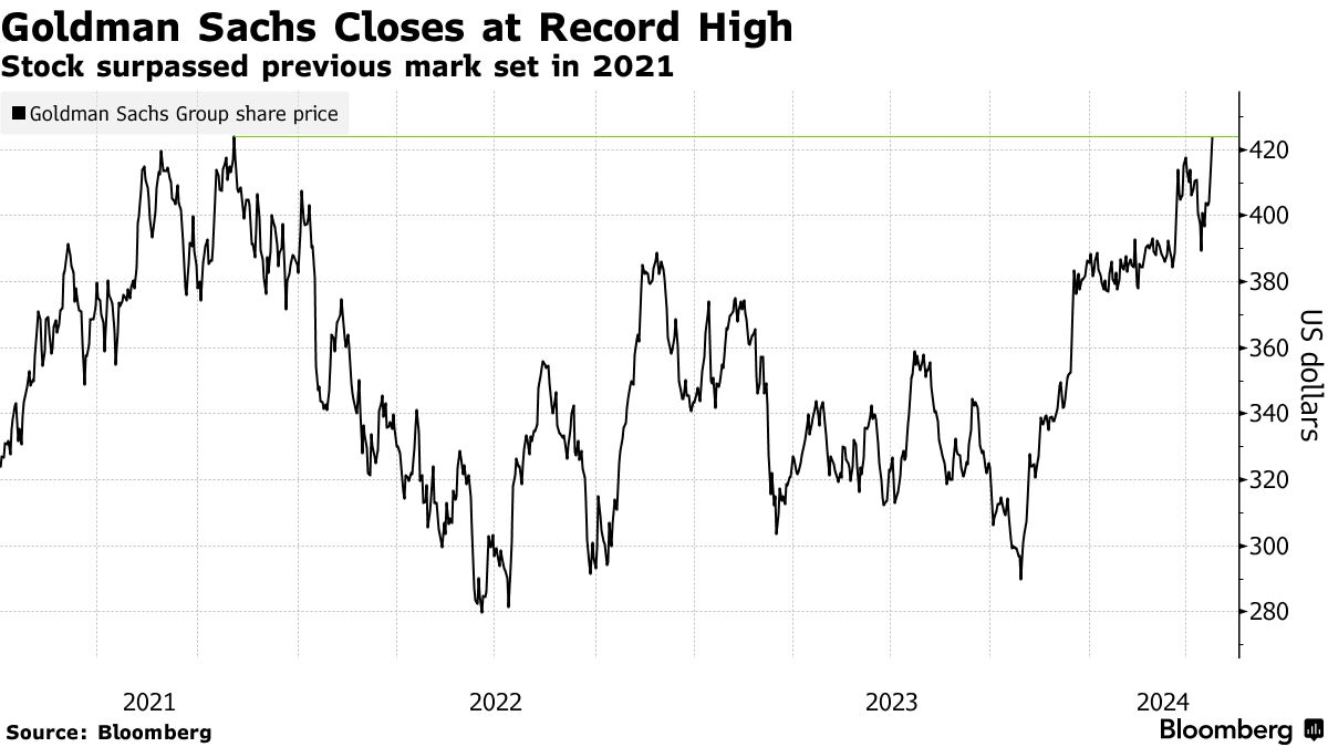 高盛集团(GS)股价攀升至2021年以来的首个创纪录高点 - 彭博社