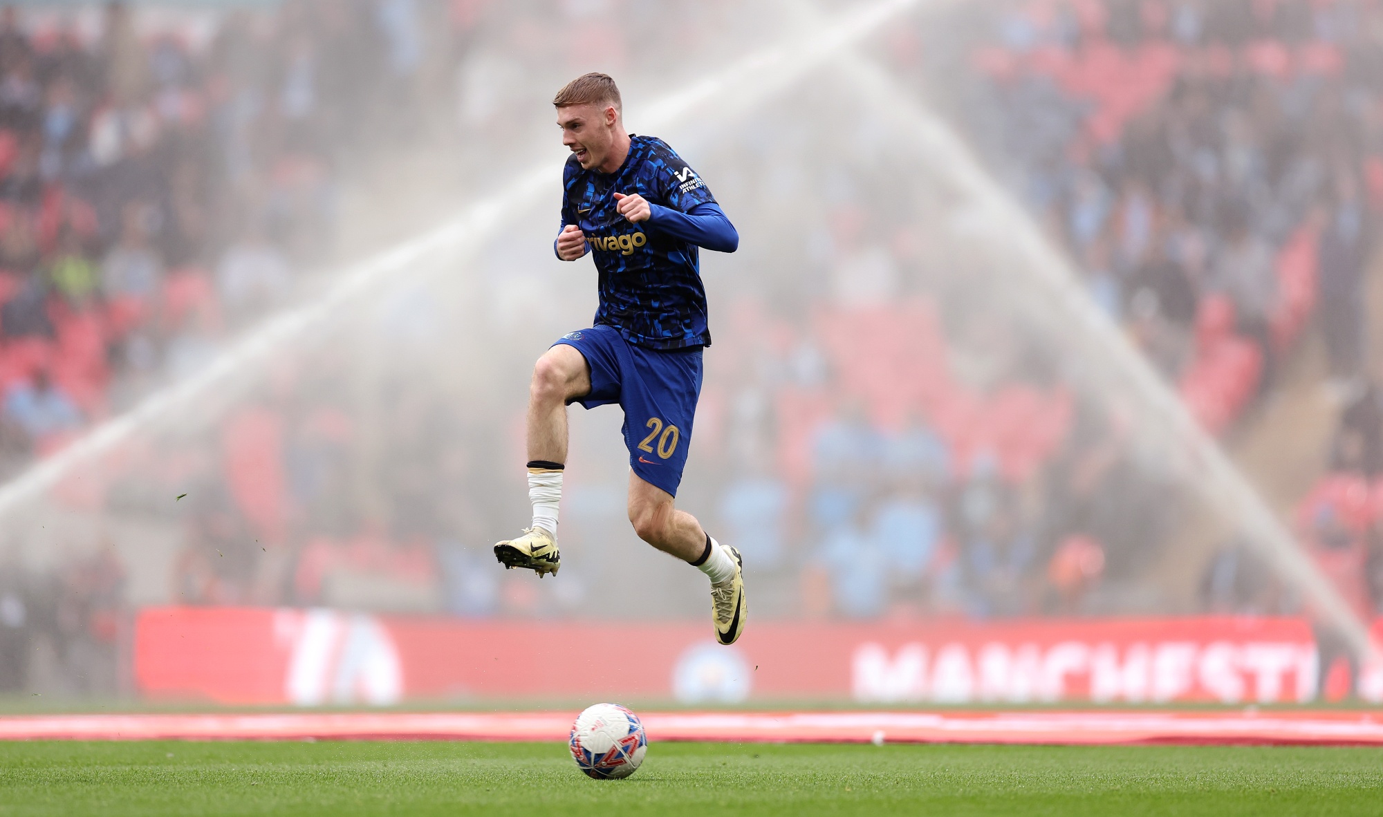 切尔西的科尔·帕尔默在与曼城的足总杯半决赛比赛前热身。