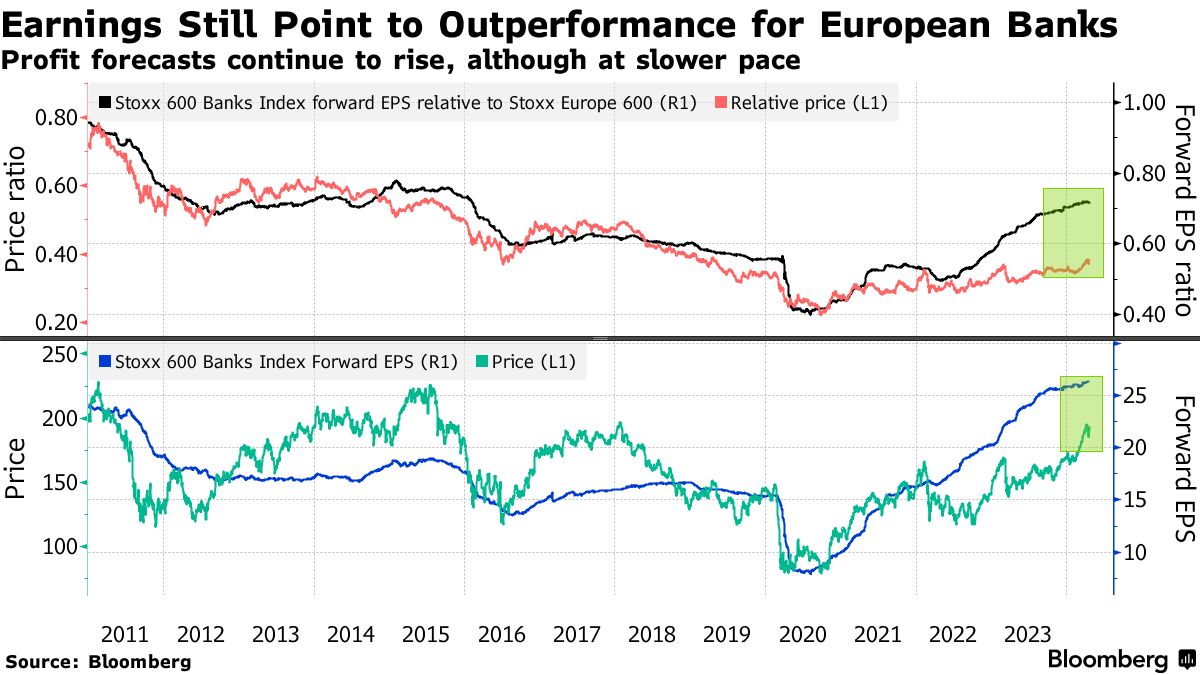 然而,投资者并不气馁,他们指出经济仍然具有韧性,欧洲的低信贷利差和拖欠款项可能会使不良贷款受到控制,盈利具有韧性。