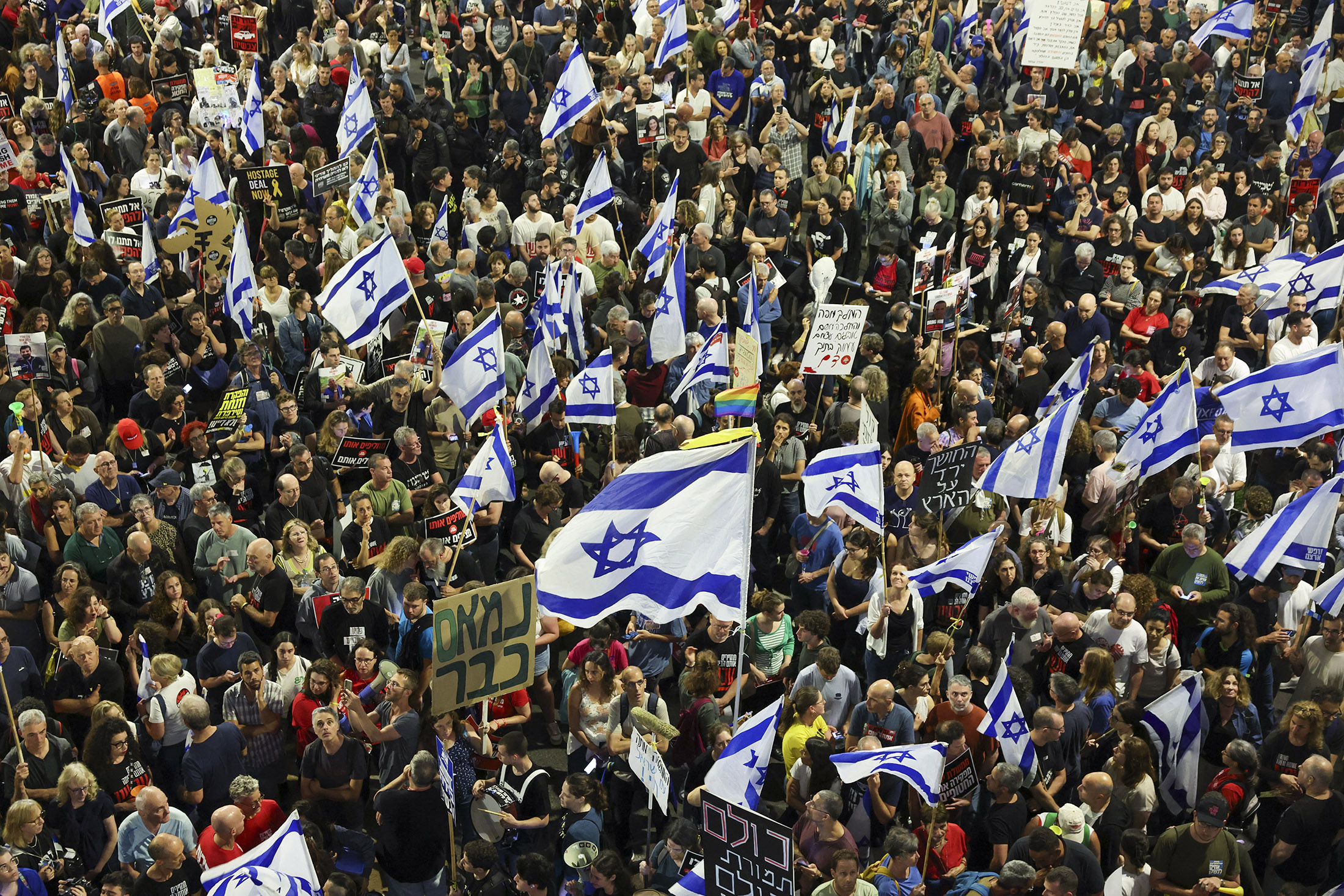 哈马斯扣押人质的亲属和支持者在以色列特拉维夫举行示威,要求释放人质,时间是4月27日。摄影师:杰克·盖兹/法新社/盖蒂图片社哈佛大学的学生加剧了他们在校园内就以色列-哈马斯冲突进行的抗议活动,这反映了哥伦比亚大学、耶鲁大学和纽约大学等学校爆发的行动。