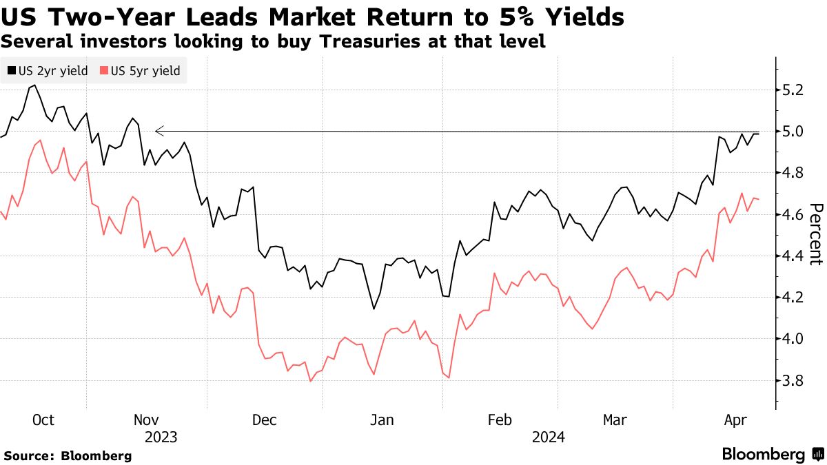 在周三拍卖之前,国债下跌,五年期利率上涨四个基点至4.67%。两年期利率上升至4.94%,这是自拍卖以来的价值损失。