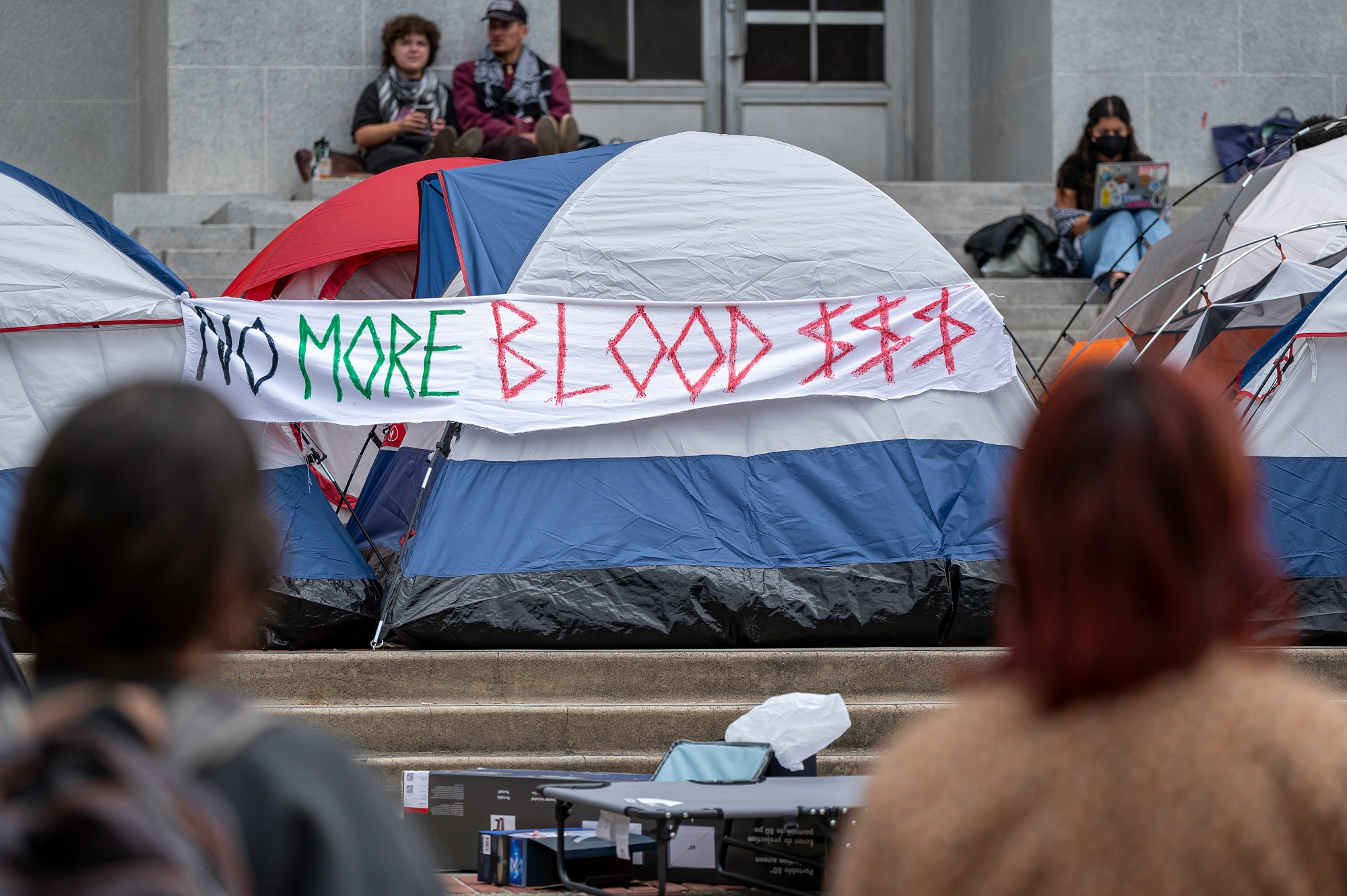 校园抗议活动在过去几天重新燃起,哥伦比亚大学、纽约大学、耶鲁大学、麻省理工学院等学校的学生在校园内设立了营地,要求学校退出有利于以色列政府的投资。一些抗议活动中出现了反犹太主义和恐吓性口号和海报,这加剧了犹太学生的孤立感。