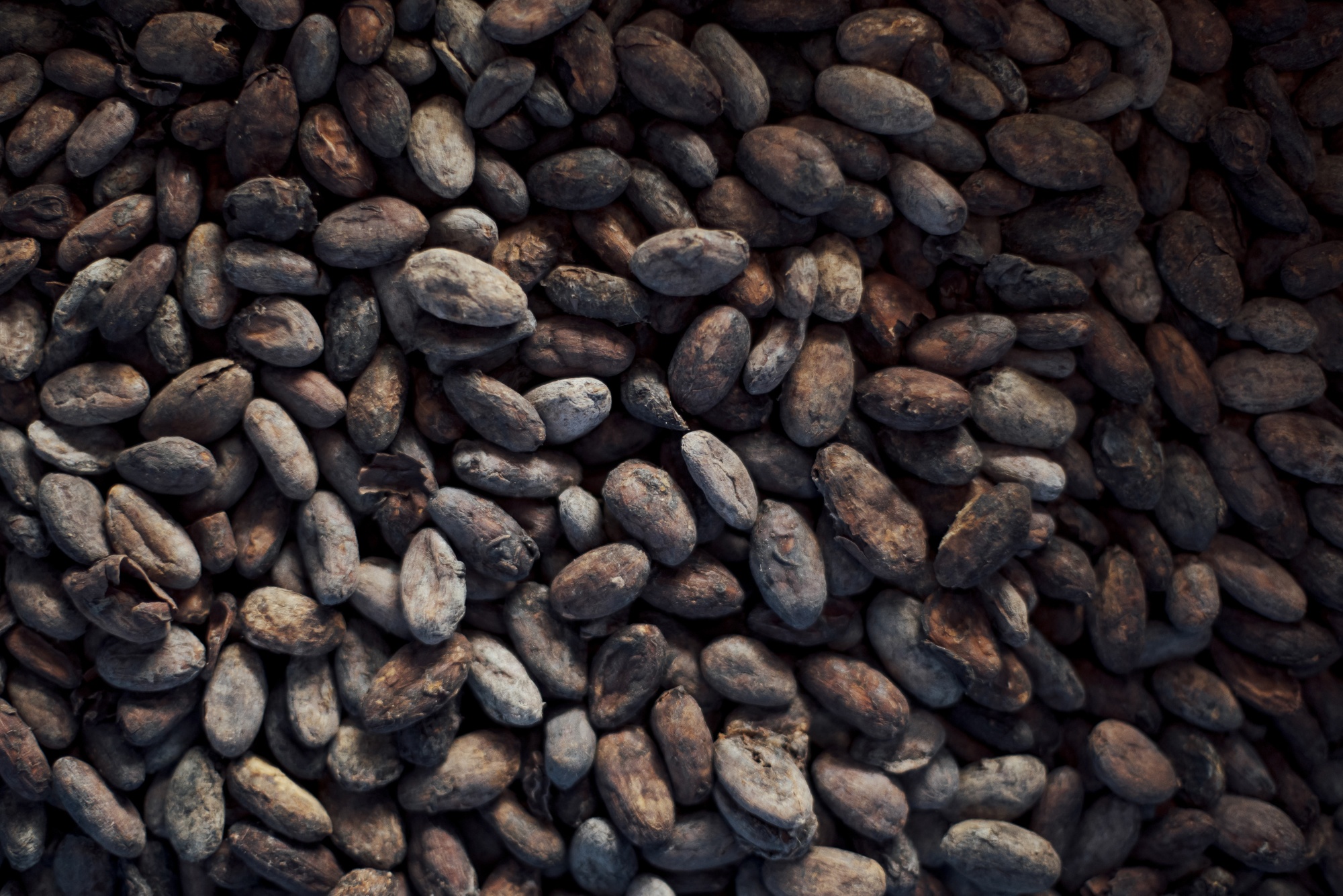 阿兰·杜卡斯(Alain Ducasse)厨师在巴黎的巧克力工厂里的可可豆,2024年4月22日。
