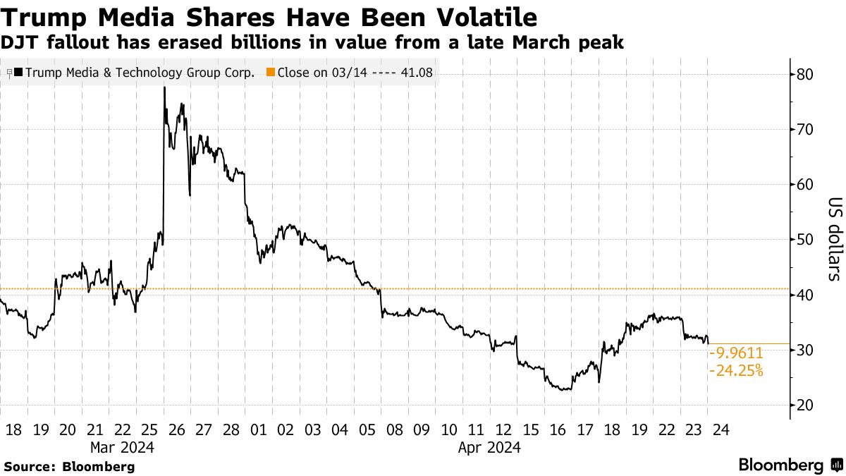自四周前上市以来,该股票一直波动不定,周三交易价约为33美元,首次在纳斯达克上市时曾一度达到79.38美元。特朗普媒体吸引了个人投资者,他们纷纷涌入该股票,并在Truth Social平台上宣传他们的投资,作为支持特朗普2024年连任竞选的方式。