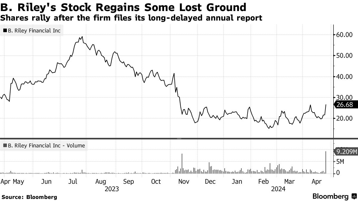 在周三的提交之前,由于与被一些投资者在法庭文件中指责为预言公司倒闭的Kahn的交易而引发的担忧,B. Riley的股价暴跌。该基金的倒闭已成为联邦调查的对象,该基金的一名关键高管在11月承认了欺诈指控。据彭博报道,当局已将Kahn标记为未被起诉的共谋者。