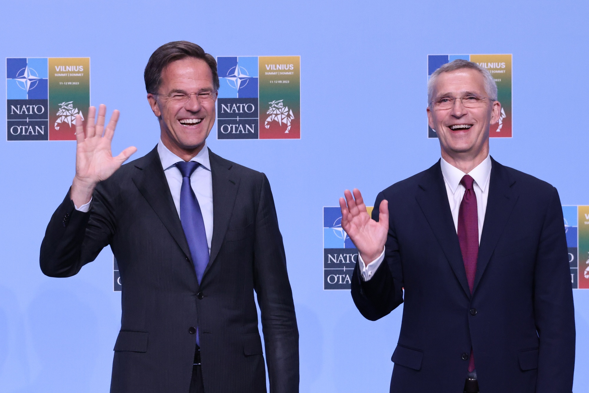 马克·吕特(Mark Rutte)(左)和延斯·斯托尔滕贝格(Jens Stoltenberg)。