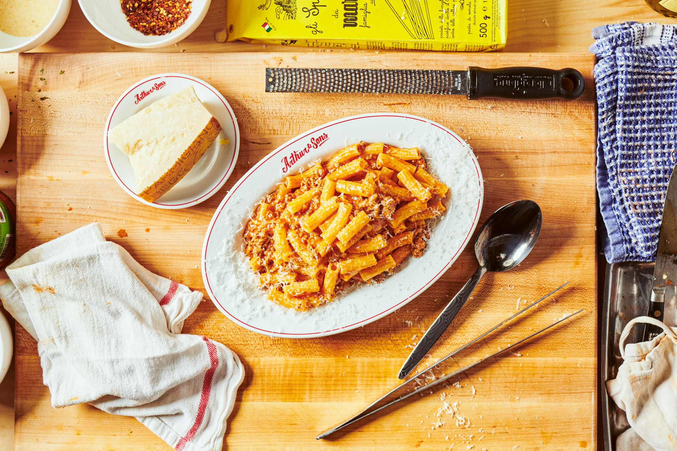 亚瑟和儿子的里格托尼肉酱意面。摄影师:圣母与圣子亚瑟和儿子,布里奇汉普顿伊西多里将他上世纪90年代在西村开设的意大利裔美国红酱餐厅亚瑟和儿子带到东部。这家位于203 Bridgehampton Sag Harbor Tpk.的地方将拥有一个70座的用餐厅、一个庭院和宽敞的15座吧台—伊西多里表示,这里将有一种“老派新派的氛围”。在布里奇汉普顿,他将倾向于季节性,并提供像龙虾番茄意面配管状面食帕克里,以及用当地番茄做的意大利奶酪卡普雷塞沙拉等菜品。