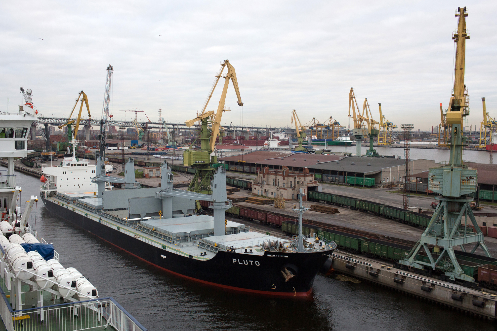 在俄罗斯圣彼得堡的圣彼得堡大港的一艘载体船。