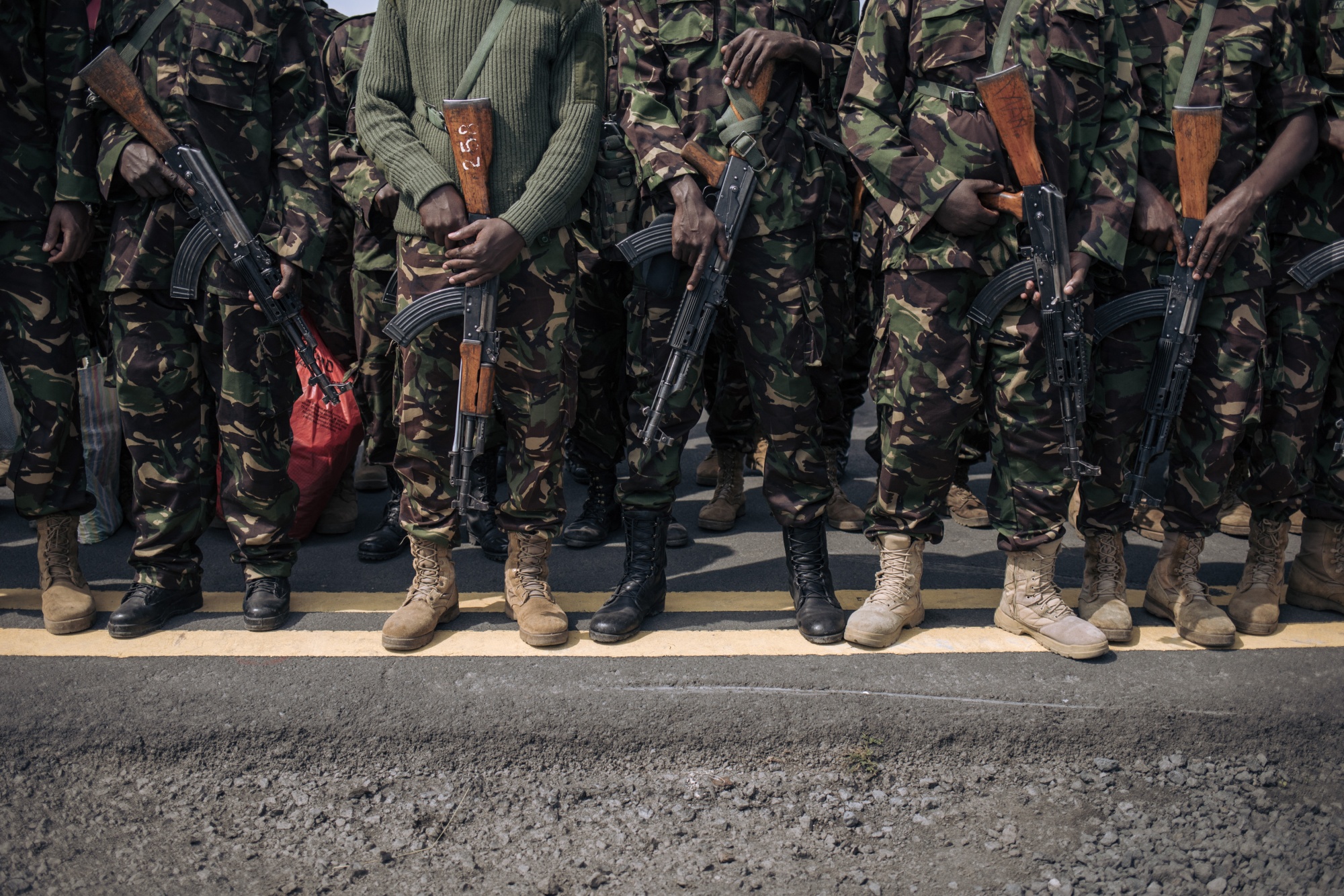 士兵们在刚果民主共和国戈马机场持有AK突击步枪,日期为12月3日。