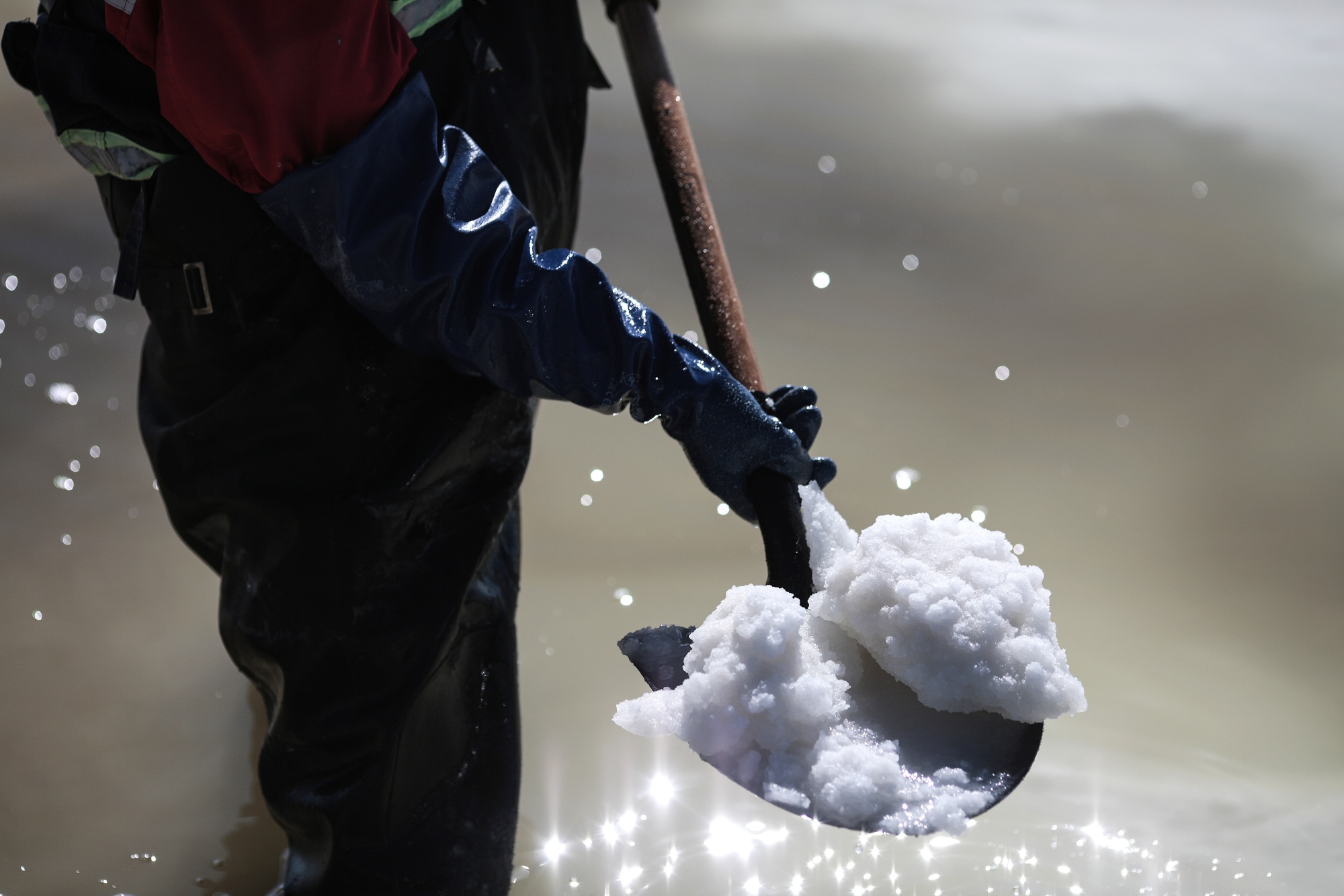 一名工人在玻利维亚乌尤尼搬运碳酸锂的原材料。