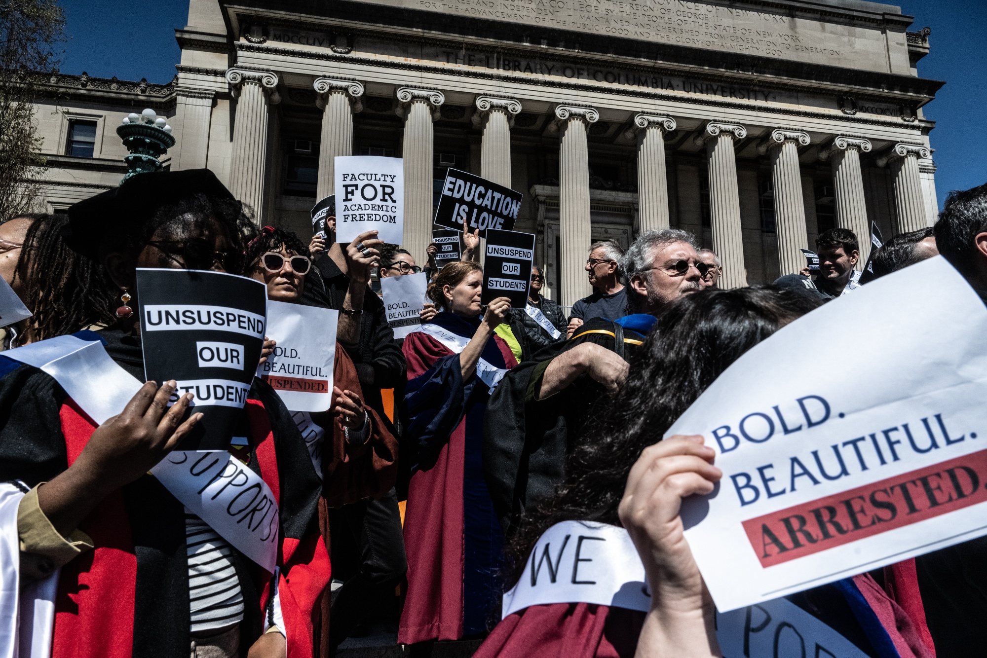 纽约曼哈顿上西区哥伦比亚大学的教职员工抗议活动。摄影师:Stephanie Keith/Bloomberg拜登竞选官员表示,他们认为抗议活动不会危及总统赢得第二个任期的机会。他们表示,示威者代表了年轻选民中的一小部分,但他们的声音响亮,而这场战争并不是他们这个年龄组中大多数人的决定性问题。