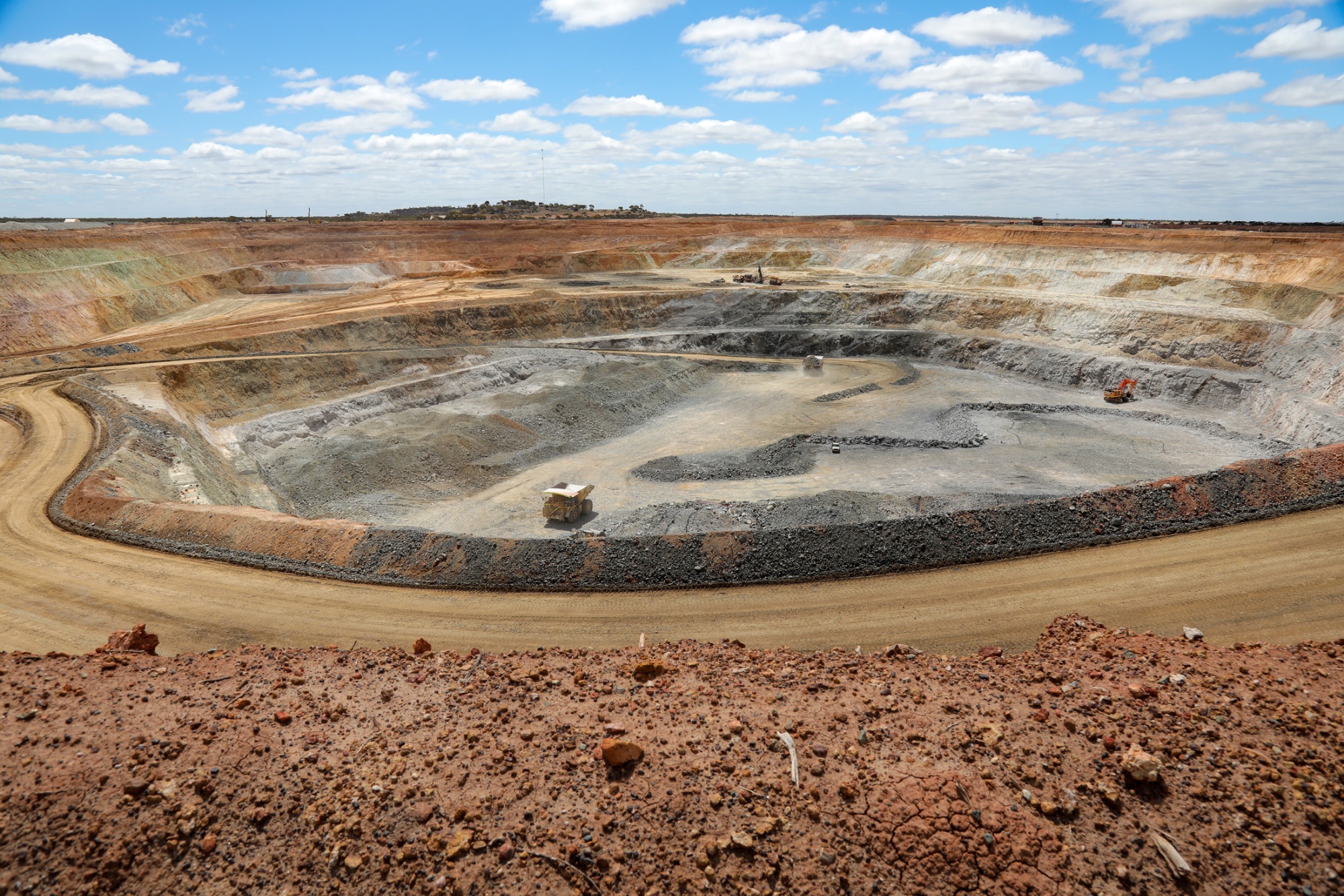 在澳大利亚内陆干旱的红土地上,莫特·荷兰锂矿显现为一个巨大的灰色带有斜坡的坑洞,卡车大小的车辆沿着陡峭的斜坡缓缓行驶。