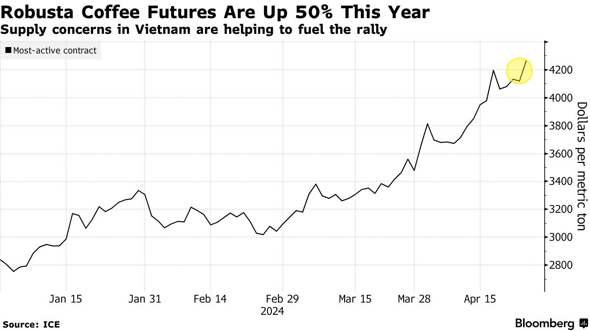 咖啡价格将继续上涨,因囤积和高温加剧了越南供应短缺问题 - 彭博社