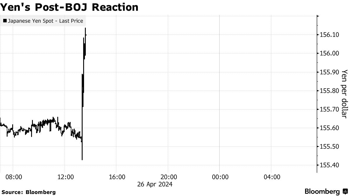 JPY/USD:随着日本央行维持关键利率不变,日元跌至34年新低-彭博社