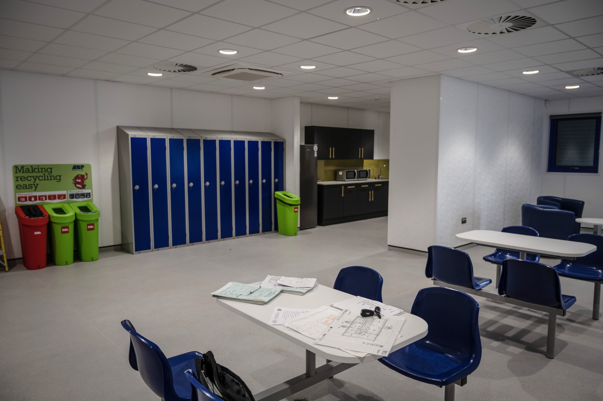 边境检查站分为三个部分 — — 用于检查低风险产品的卫生人员、负责打击走私的边境部队,以及用于检查高风险农产品的兽医的最高科技部分。一个取样部分包含冰箱和一个消毒刀柜。卡车倒车进入设施的17个停车位之一,该设施距离港口约一英里。