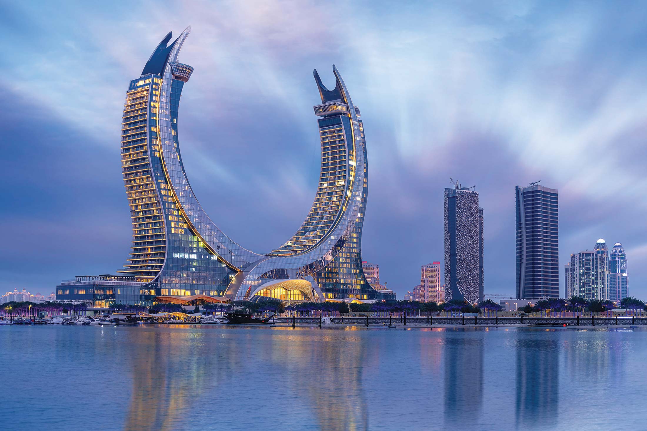 卡塔尔塔楼。摄影师:Hasan Zaidi / Alamy在卢萨伊勒闪闪发光的卡塔尔塔楼——这座新的建筑地标灵感来自卡塔尔国徽上交叉的阔刀,现在还容纳了一家莱佛士和一家费尔蒙在结构的“剑”中。两者都采取了过度奢华的方式。莱佛士的大堂天花板是世界上最大的万花筒,有974块镶嵌的镜面屏幕,而费尔蒙的大堂拥有世界上最大的吊灯,一个11层高的致敬卡塔尔珍珠历史的珍珠形珠宝。不过,两者都设计优雅。全套房的莱佛士由马塞尔·旺德斯设计,风格像现代宫殿,而费尔蒙的美学由皮埃尔·伊夫·罗什翁借鉴了豪华游艇。