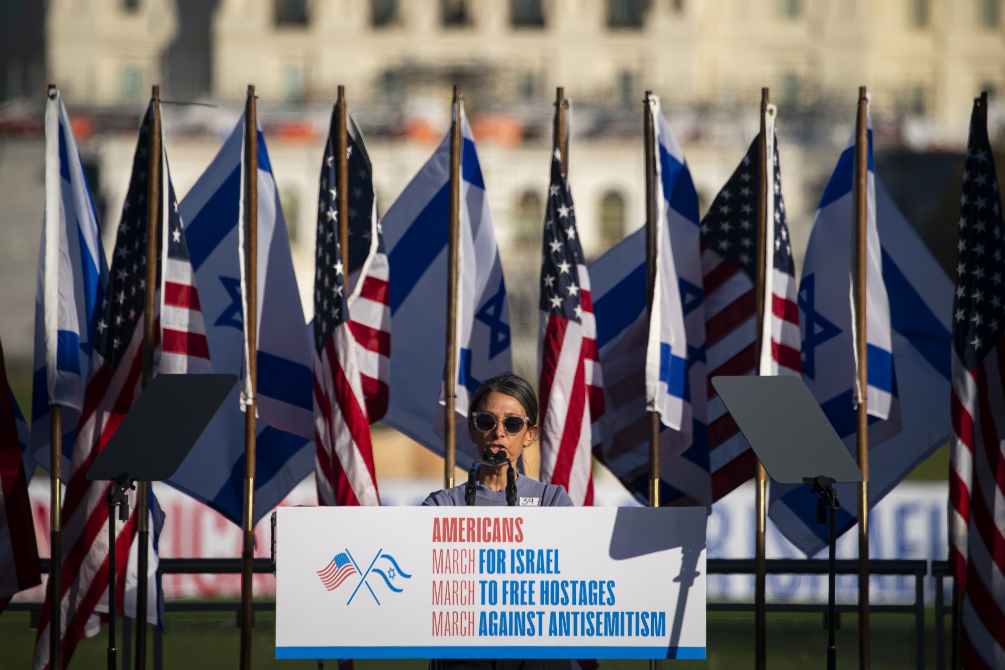 Hersh Goldberg-Polin的母亲在去年11月在华盛顿国家广场举行的“支持以色列”集会上发言。摄影师:Al Drago/Bloomberg阅读更多: 也门胡塞叛军称袭击了以色列和以色列船只