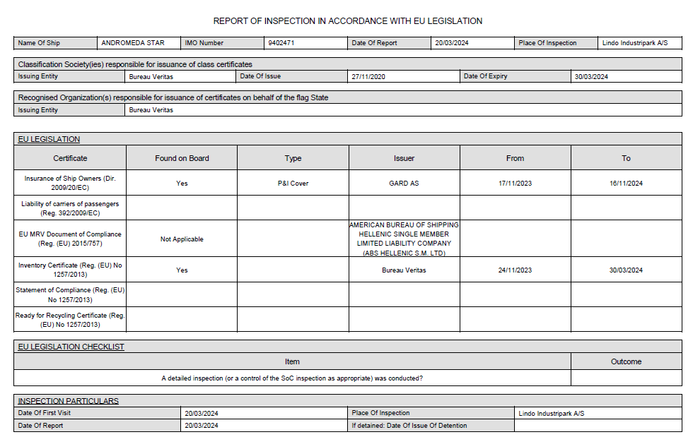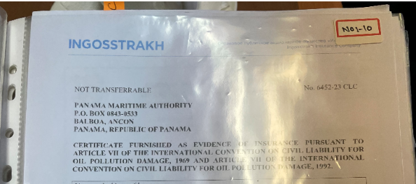 丹麦海事管理局在一份信息自由请求和随后的查询中表示,该船提供了一些来自Gard AS的保险文件,Gard AS是全球最大的防溢出和碰撞保险提供商。但Gard的一位发言人表示,该公司在碰撞发生时并非保险商,现在也不提供保险。