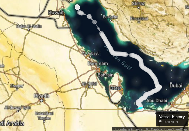 根据彭博的油轮跟踪数据和船舶代理报告,本月早些时候,油轮Orient M向鲁瓦伊斯运送了约100万桶来自伊拉克的巴士拉原油。