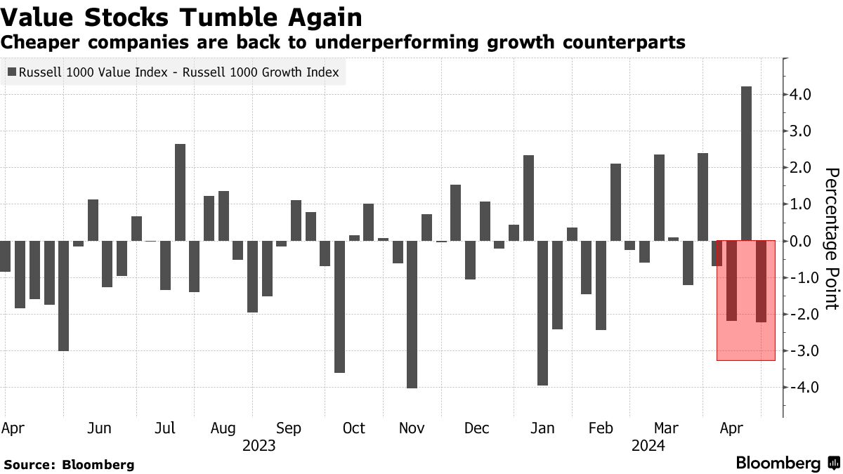 “科技/成长曾受到较高收益率的影响,”格罗斯在周五给彭博社的一封电子邮件中写道。“但现在不会。”