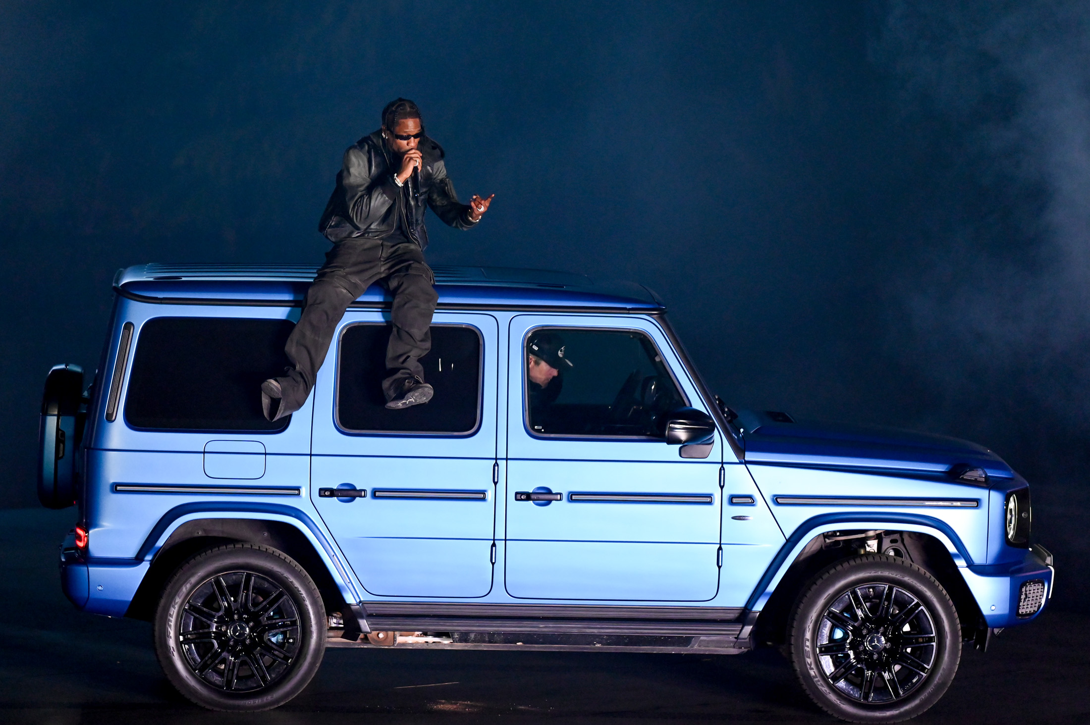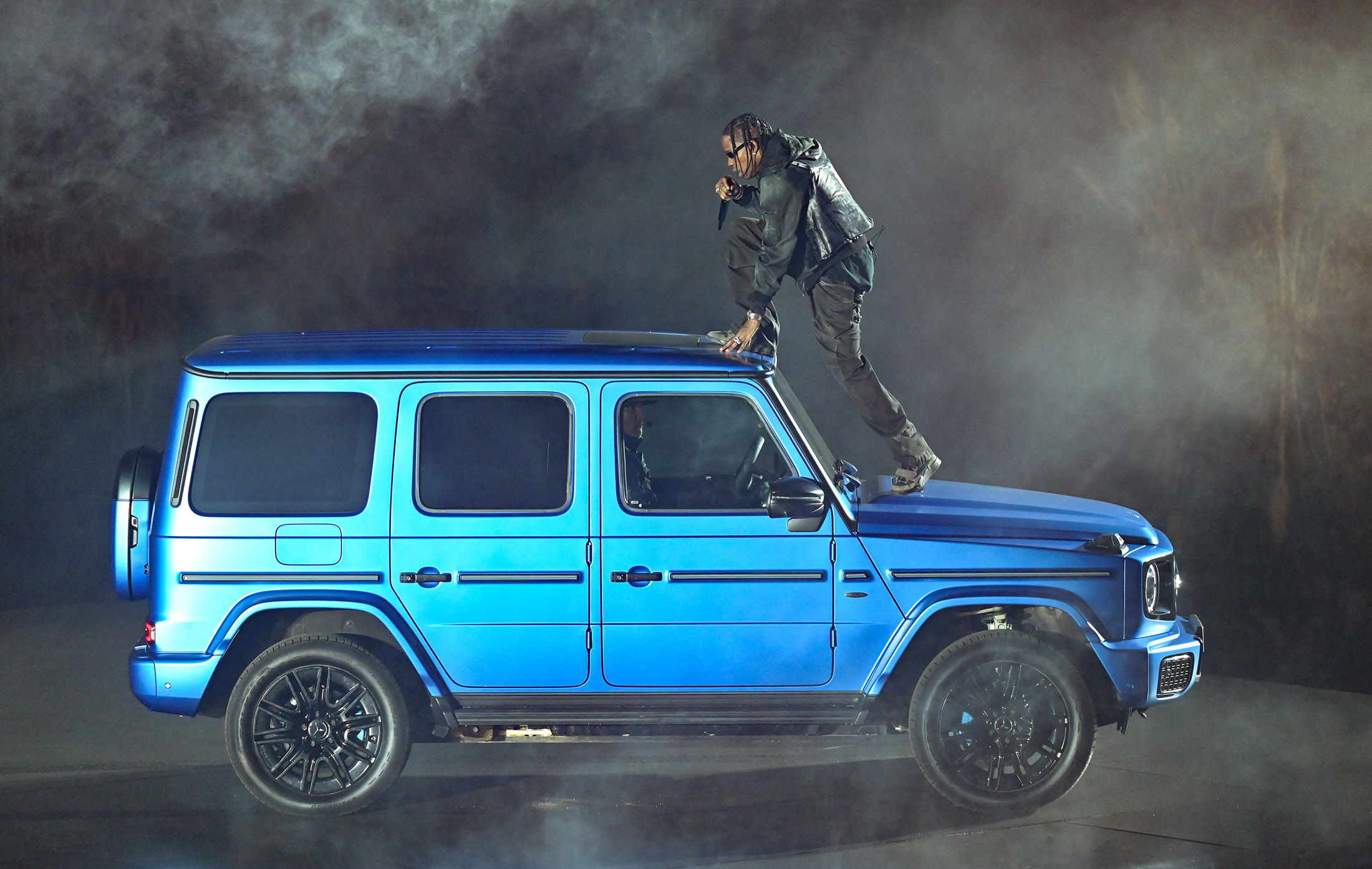 特拉维斯·斯科特在梅赛德斯-奔驰G级车发布会上表演。