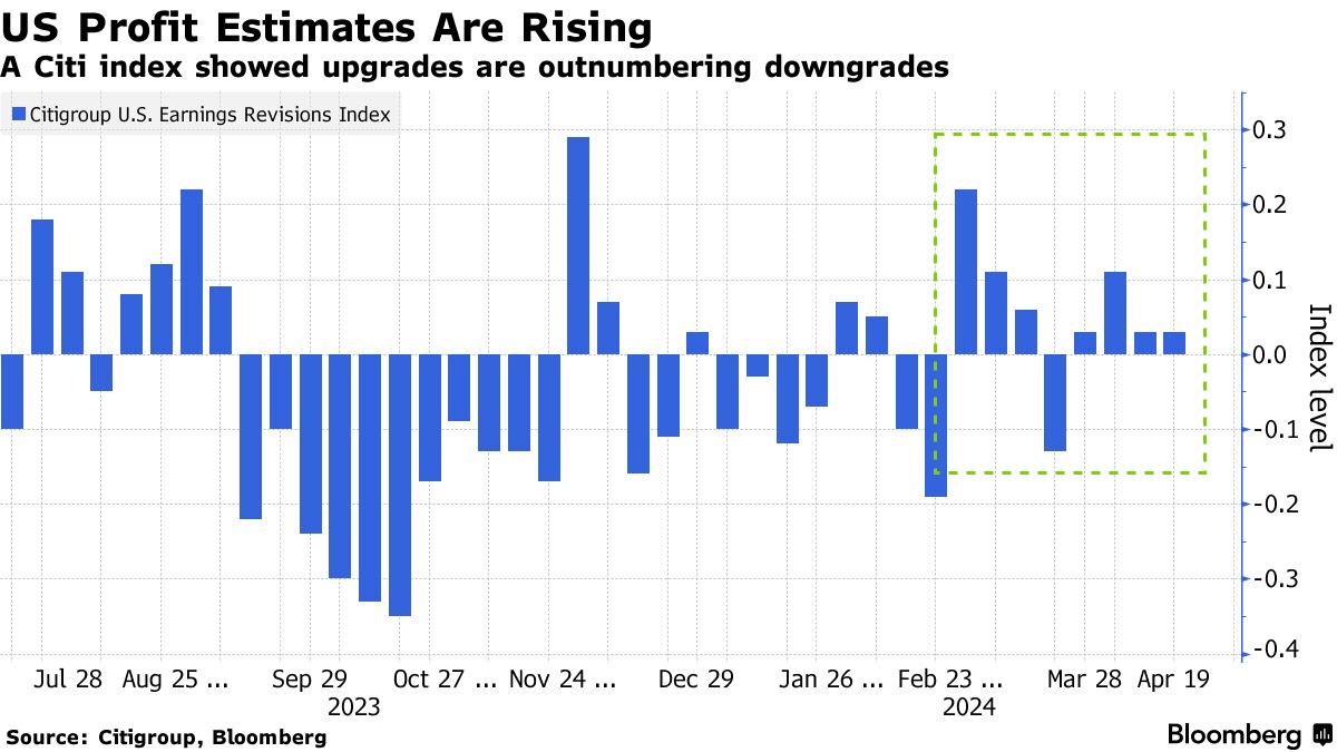 当前财报季节的初步结果显示,约81%的美国公司在高利率背景下超出了预期。根据彭博智库编制的数据,与去年同期相比,第一季度的盈利有望增长4.7%,而预季度估计为3.8%。