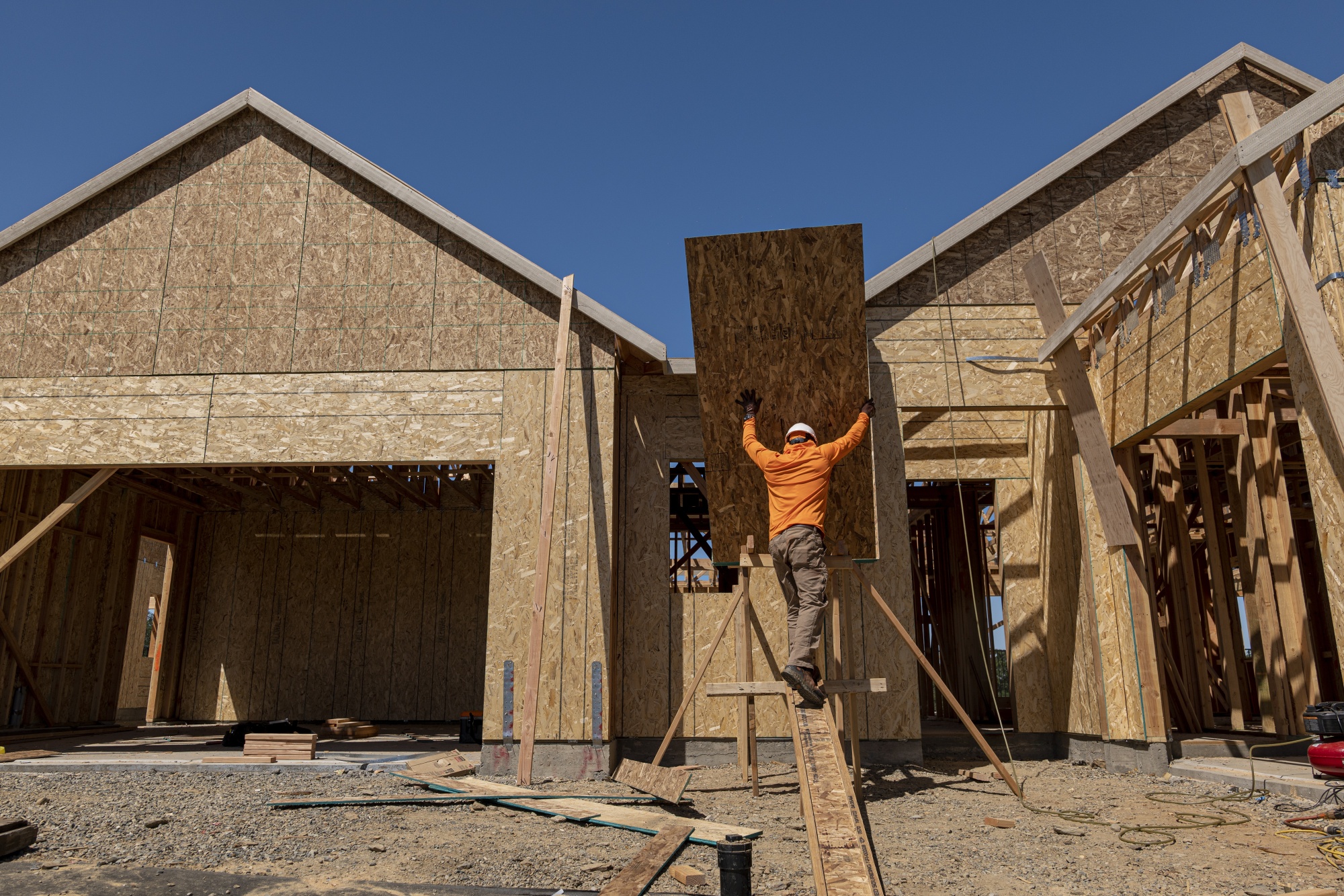 一名承包商在美国加利福尼亚州一座正在建设中的房屋上工作。摄影师:David Paul Morris/Bloomberg最近移民激增到美国,导致许多经济学家提高了他们的预测。现在他们正在寻找更多关于其影响的迹象。