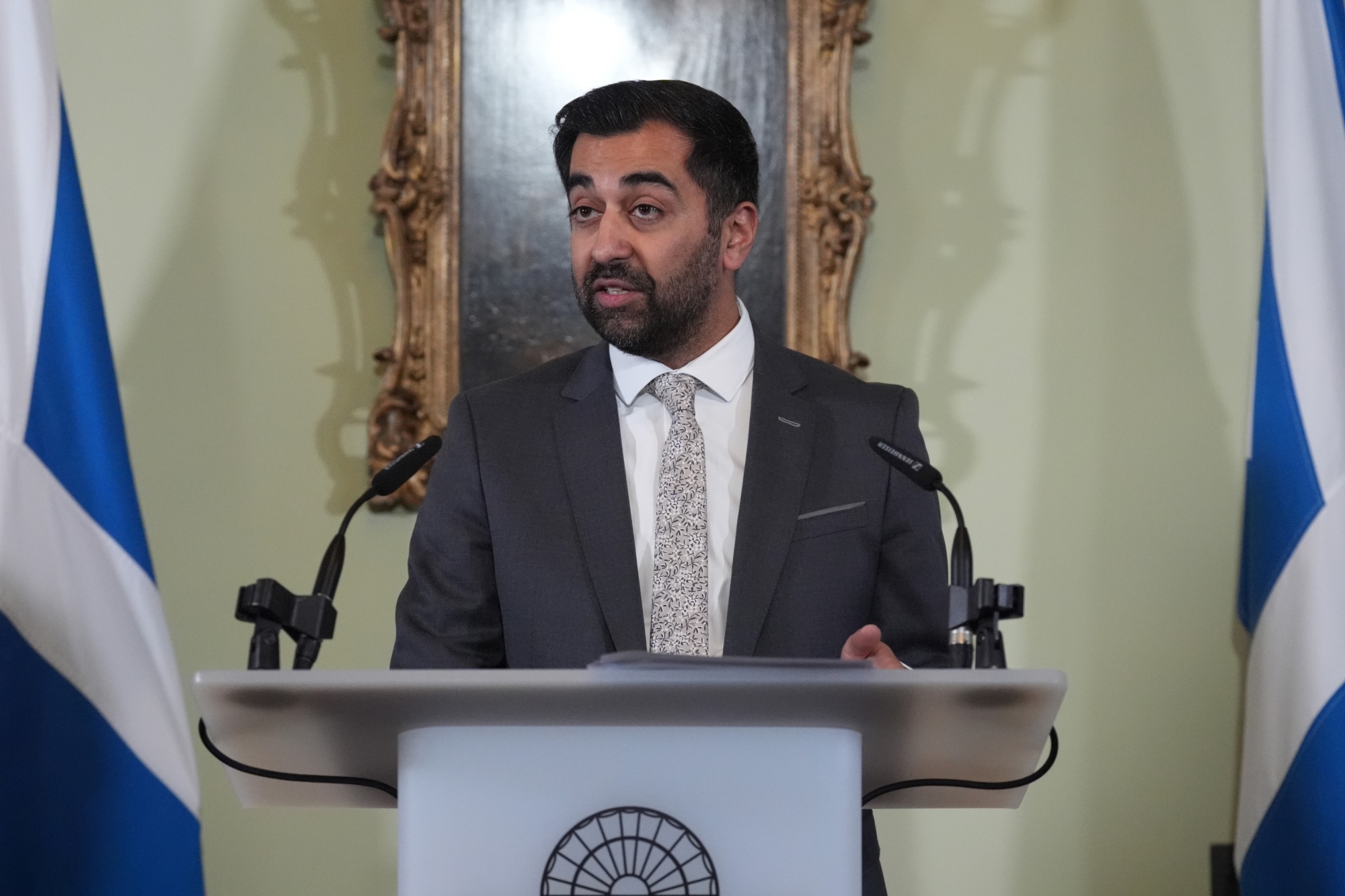 胡姆扎·尤萨夫在苏格兰爱丁堡布特宅邸举行的新闻发布会上讲话,日期为4月29日。摄影师:安德鲁·米利根/盖蒂图片社全球顾问公司的英国政治分析师乔·阿米塔格说。