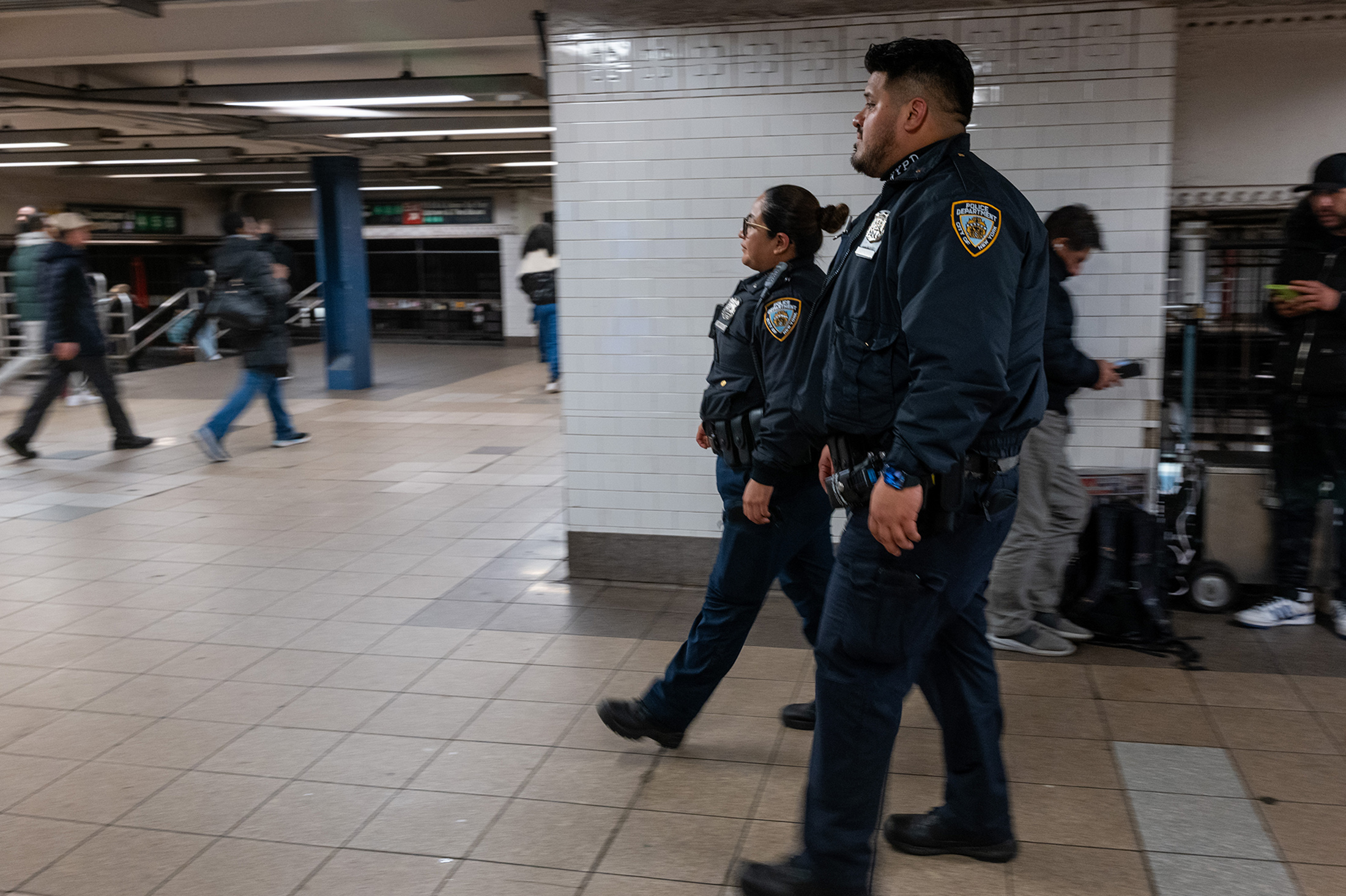 纽约警察局警官在3月6日巡逻纽约的一个地铁站。