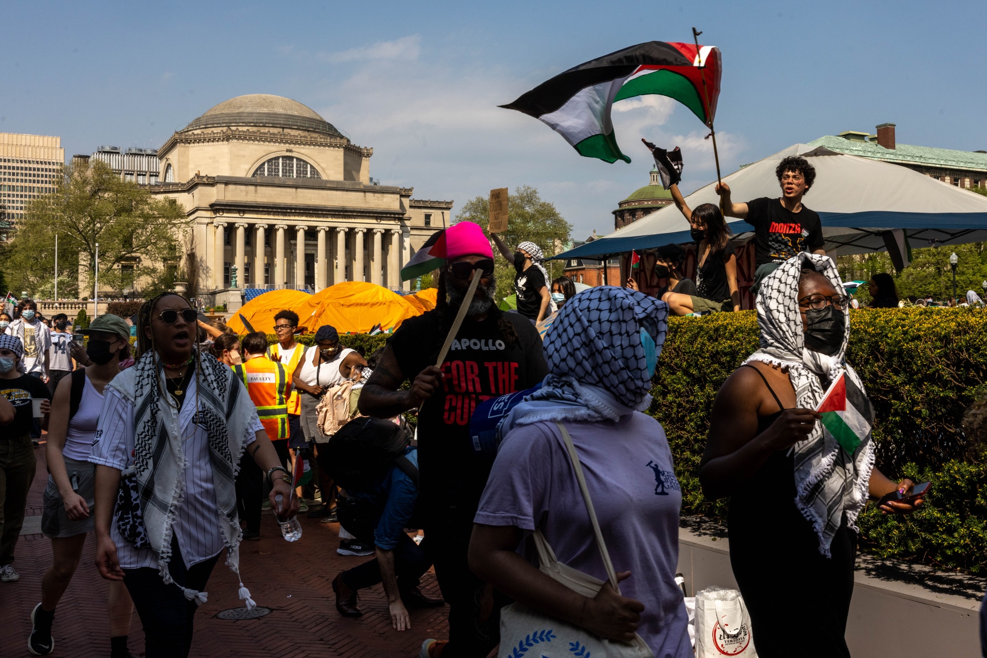 纽约警察局在哥伦比亚大学附近待命,警官们随时准备根据大学官员的要求做出反应。学校一直采取更加慎重的态度,以避免重复上周的事件,当时哥伦比亚大学校长Minouche Shafik召集了纽约警察局的警官到校园。