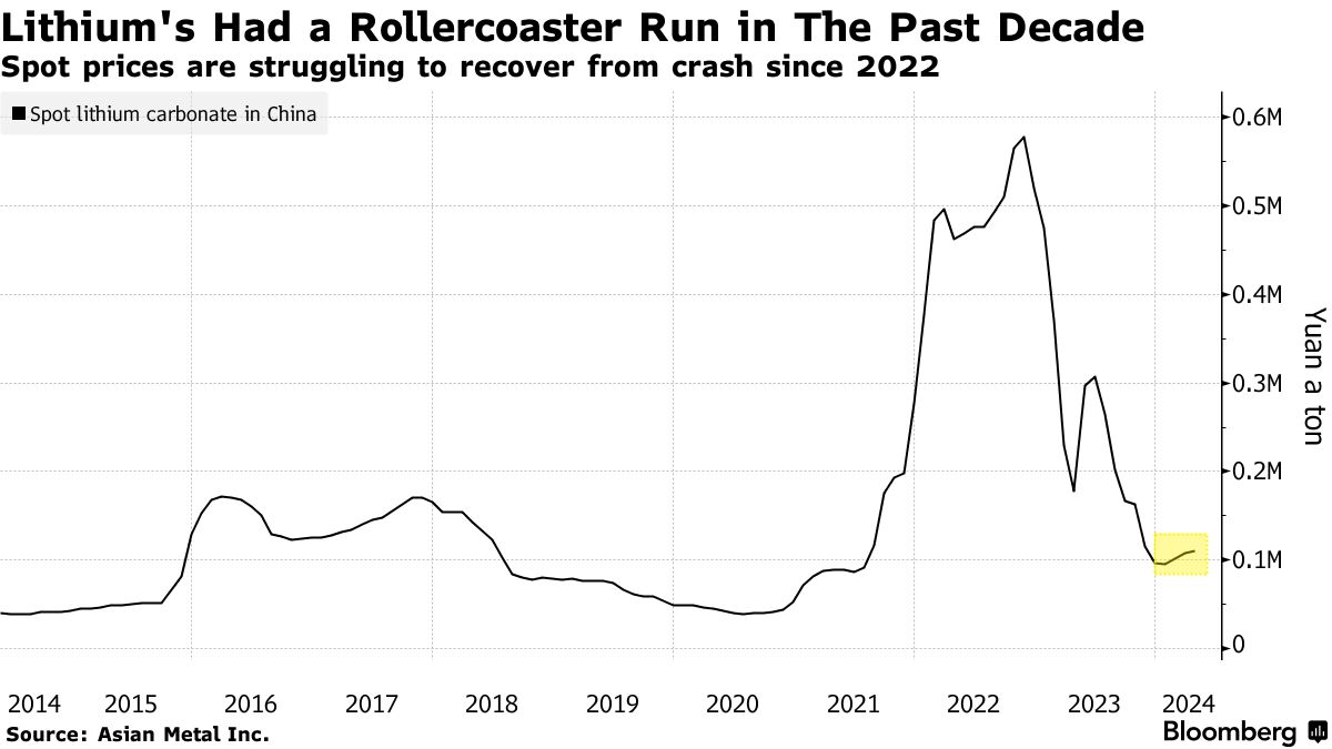 BloombergHyperdrive特斯拉因中国暂定批准驾驶系统而飙升特斯拉在加利福尼亚的销售已达顶峰,行业组织预测马斯克因印度拒绝后访问北京展示中国力量比亚迪收入低于预期,中国电动汽车折扣带来影响在锂价格繁荣被新供应浪潮和电动汽车行业高速增长的缓和所扑灭之后,天齐及其同行正经历动荡时期。中国的价格在2023年下跌超过80%,今年迄今为止尚未出现实质性反弹。