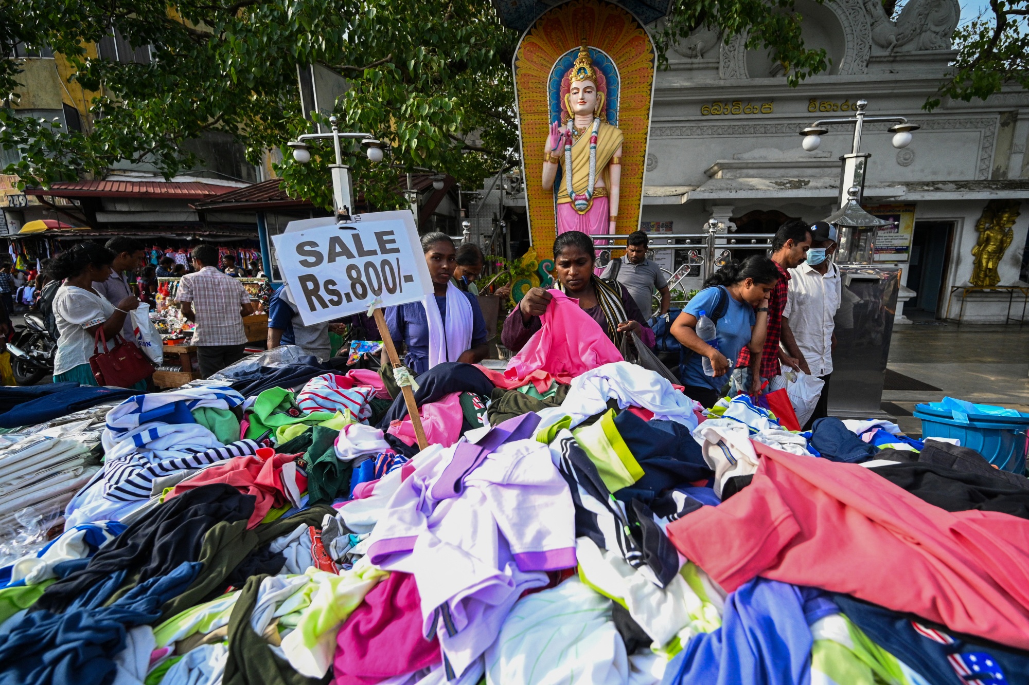 人们在科伦坡的市场购物。