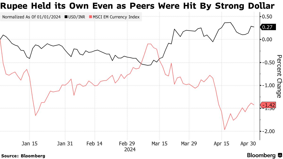 印度卢比对美元今年几乎没有变化,而泰铢下跌约8%,印尼卢比下跌5.3%,是新兴亚洲表现最差的货币之一。
