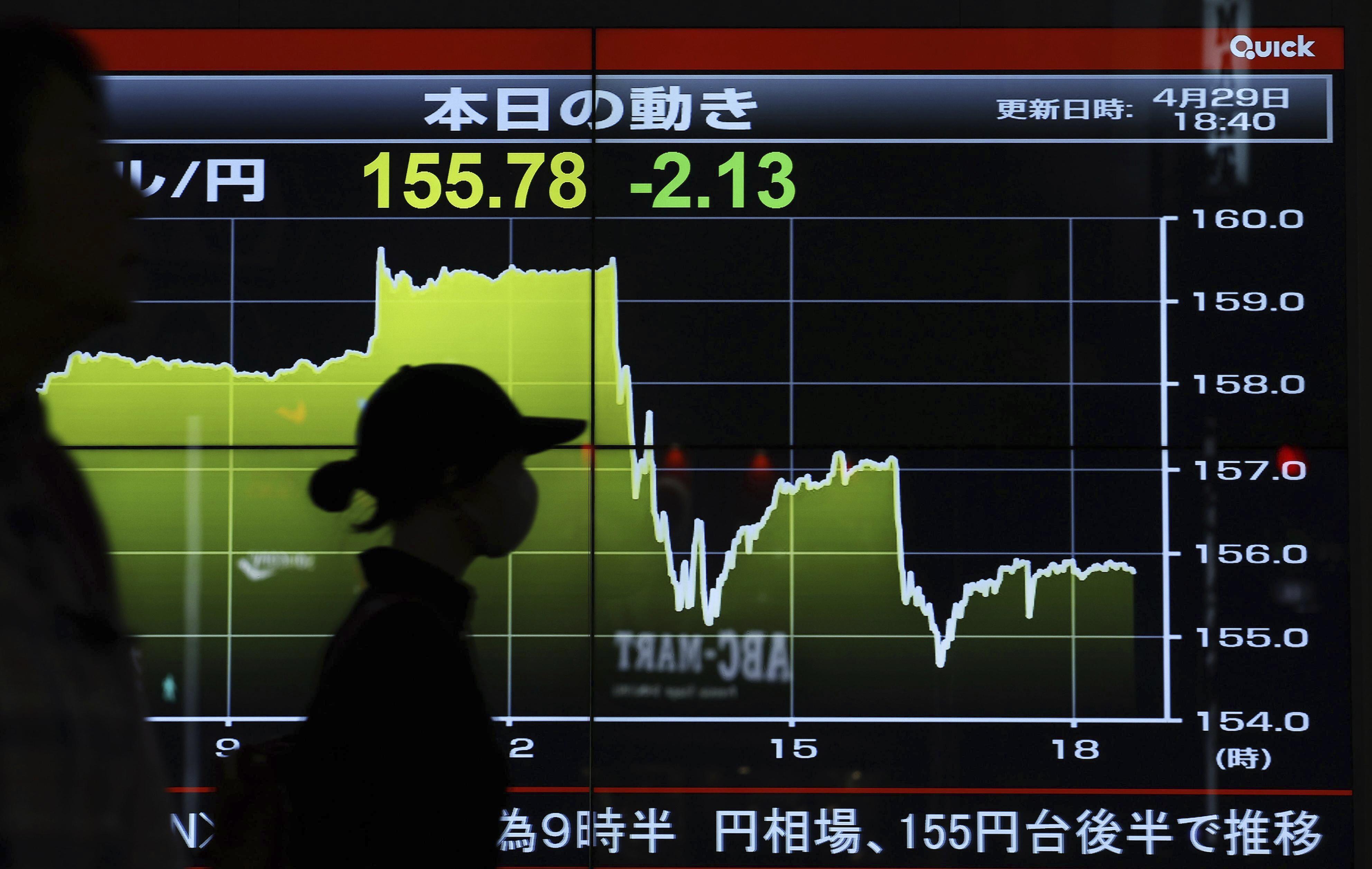 日元对美元暴跌至160,立即成为日本各地新闻报道和社交媒体的头条。来源:共同社/AP对美元暴跌至160,立即成为日本各地新闻报道和社交媒体的头条。“我们不能放松警惕”,伊口在交易进行时一再呼吁。其他所谓的红线水平 — 155和158 — 已经下跌而没有反击。有些人开始质疑当局是否会采取行动。