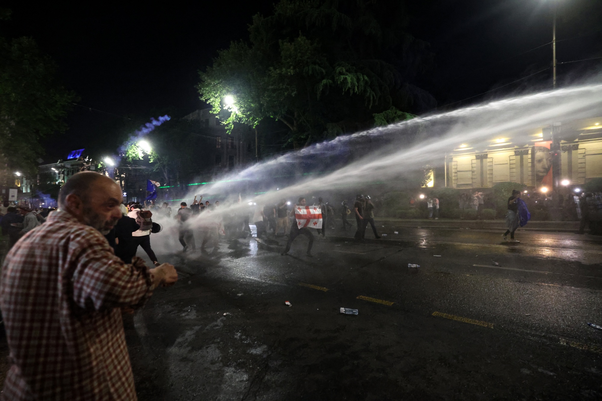 警方使用水炮驱散第比利斯议会附近的抗议者。摄影师:Giorgi Arjevanidze/AFP/Getty Images乔治亚公共捍卫者Levan Ioseliani也批评了警方的回应,并呼吁进行调查,称针对该法律的集会“具有和平性质,没有理由阻止它并对其使用武力。”