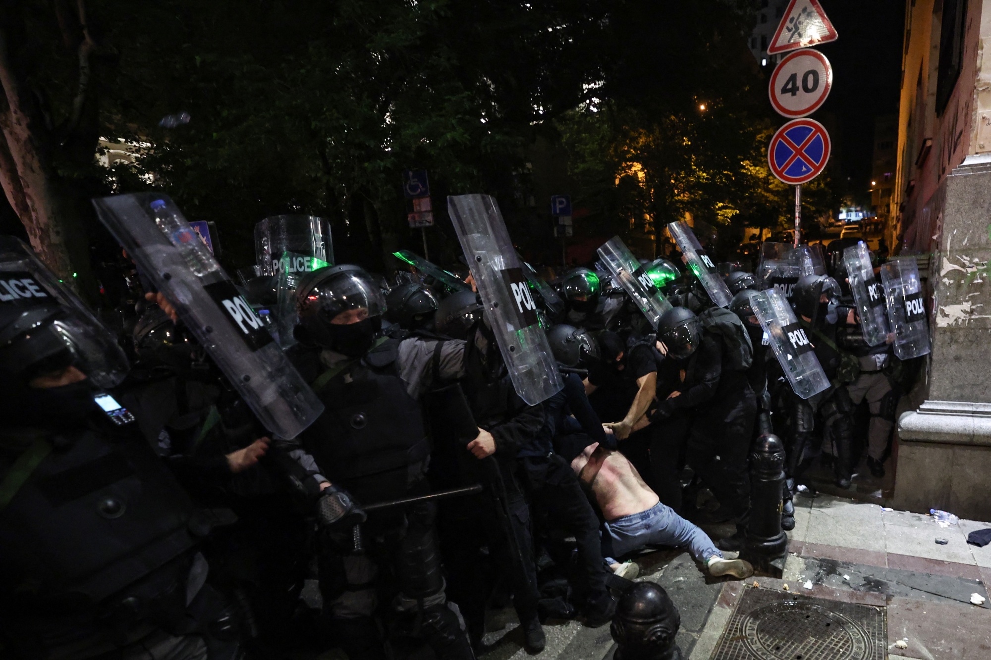 格鲁吉亚的防暴警察昨晚与抗议者发生冲突,抗议者反对一项针对非政府组织外国资金的计划政府法律。执政的格鲁吉亚梦想党的亿万富翁创始人抨击西方是一个意图将格鲁吉亚推向与俄罗斯冲突的“全球战争党”。