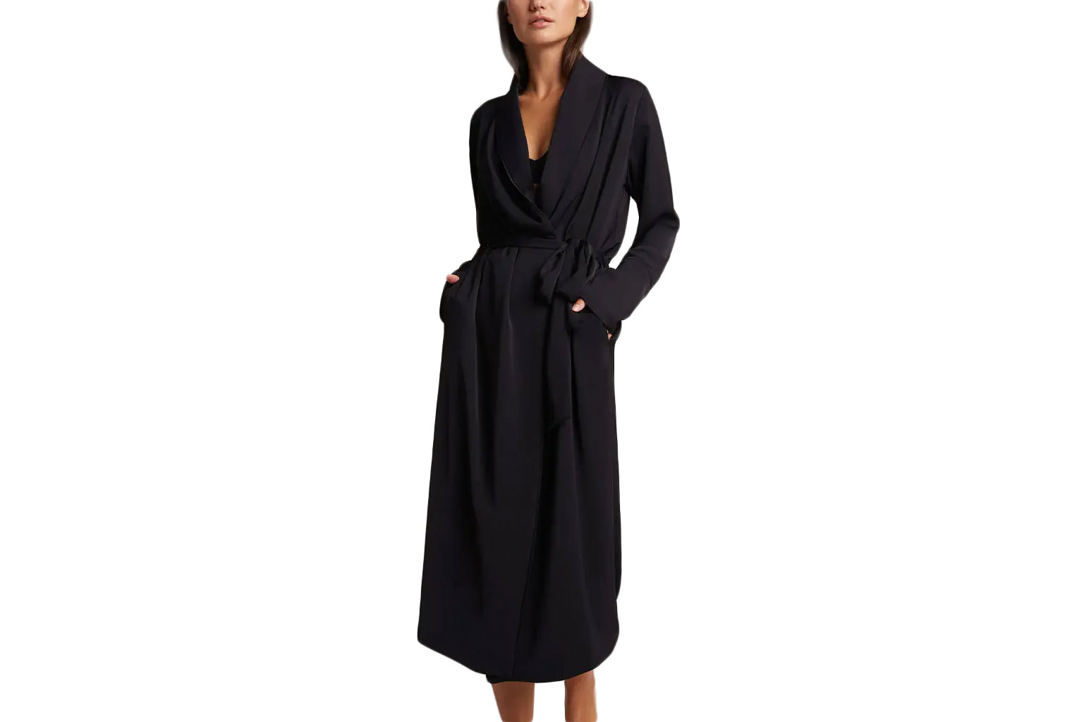 经典浴袍。来源:Negative Underwear一件能双重发挥作用的浴袍即使是最匆忙的早晨例行程序,在Negative Supreme的经典浴袍中也会感觉更加奢华。这款及膝长的基本款有纯黑色搭配装饰,或者是海军蓝色,由韩国面料制成,感觉像丝绸但可机洗。翻领设计优雅,甚至她可能甚至可以在Zoom会议中穿着它而看起来不像是穿着睡衣。$195