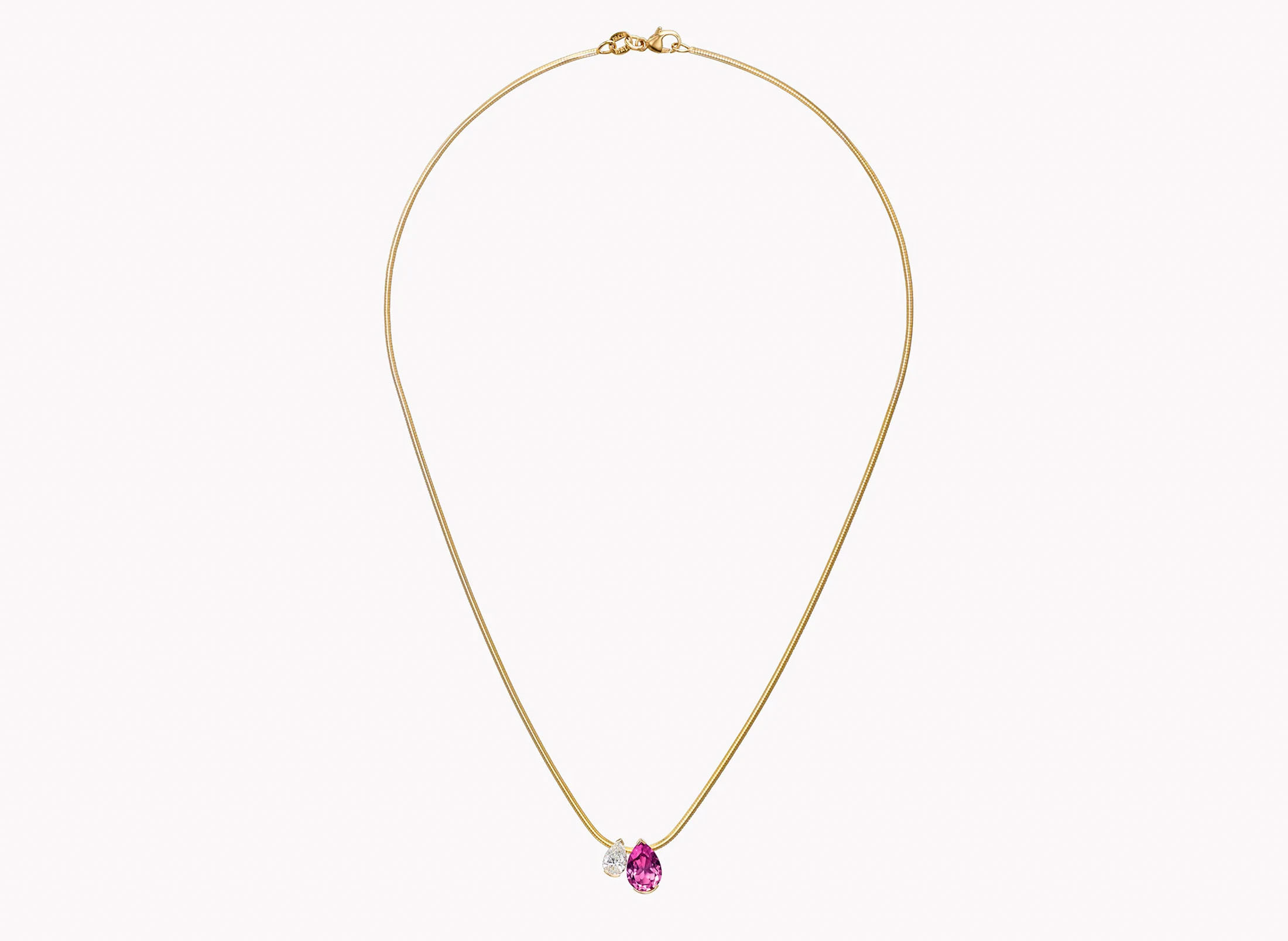 Muse Duo 项链。来源:Material GoodMaterial Good 的 Muse Duo 项链有两颗梨形宝石,尽可能少地使用金属,这种极简主义外观已成为该品牌的标志。宝石可以定制为孩子的生辰石或她喜欢的颜色。如果你是独生子女,钻石永远是第二颗宝石。每件作品都是定制的,需要三到六周的时间,所以当天带上一张可爱的卡片。售价:$6,300起