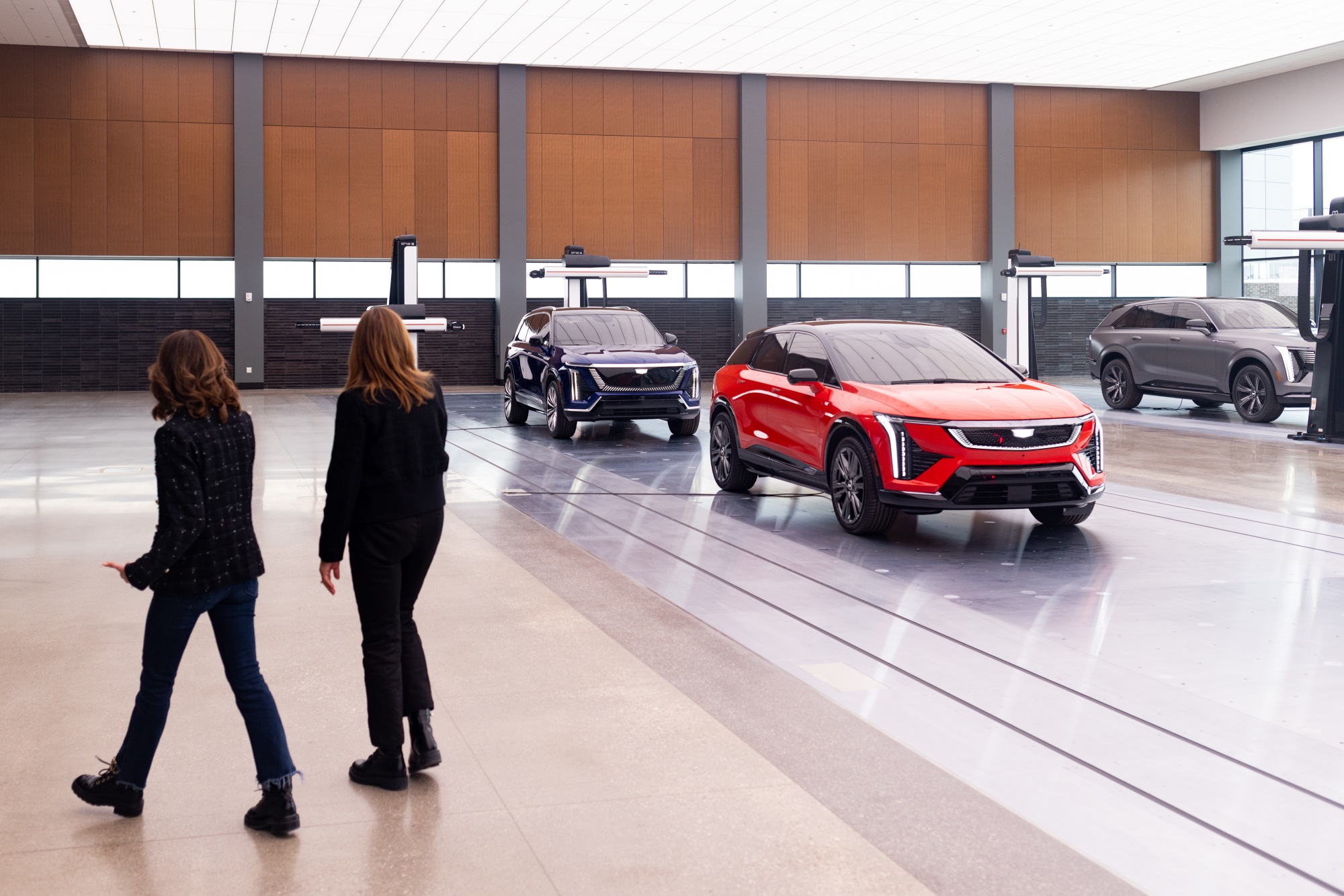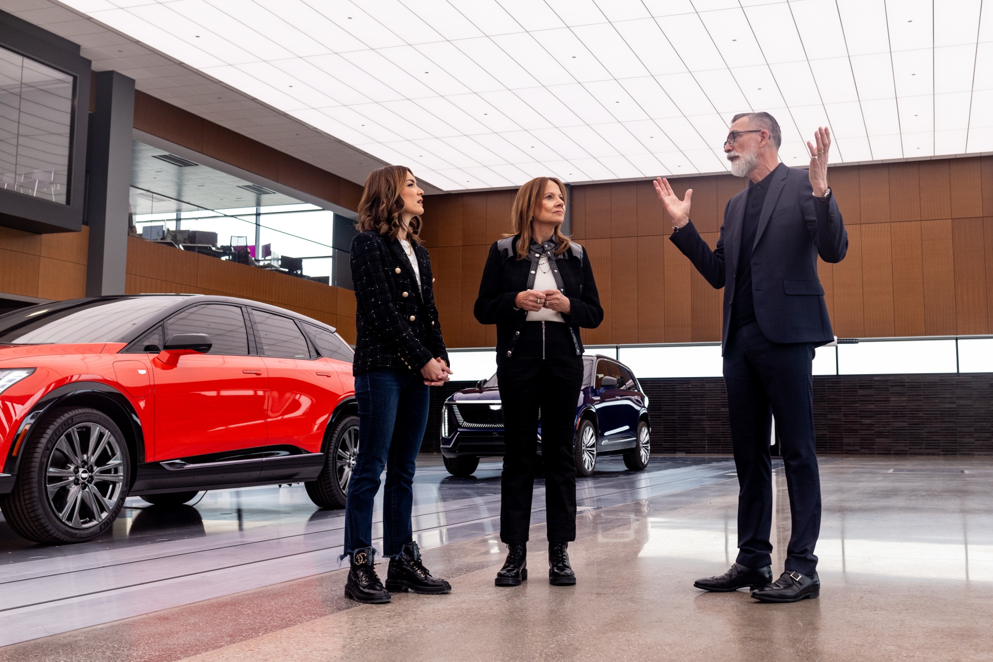 玛丽·巴拉,中间,通用汽车设计负责人迈克尔·西姆科,右边,与艾米莉·张一起在通用汽车新设计中心。摄影师:艾米莉·埃尔科宁/彭博社62岁的巴拉开着一辆通用汽车电动悍马,据说她在车内跟着泰勒·斯威夫特唱歌,承认在发展过程中遇到了一些困难,包括各种时间表和生产目标的延迟。“我在制造业长大,”巴拉说。“所以我觉得我们确实拥有很多制造方面的专业知识,但我认为我们过于理所当然地对待了一些新的流程,我们不会再犯这样的错误。”