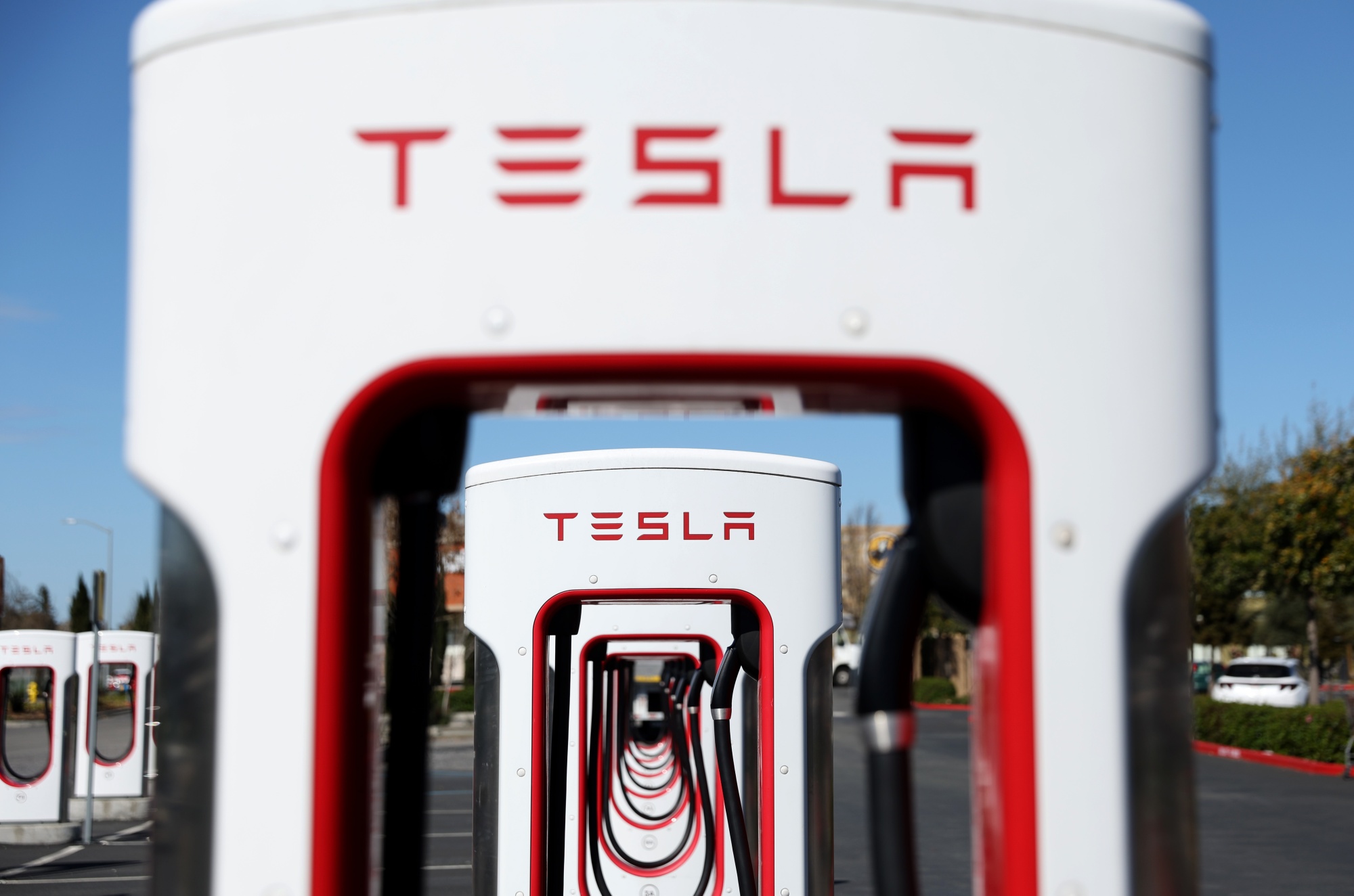 加利福尼亚州佩塔卢马的特斯拉超级充电站。摄影师:Justin Sullivan/Getty Images拉克什曼·纳拉西曼的蜜月期已经结束。