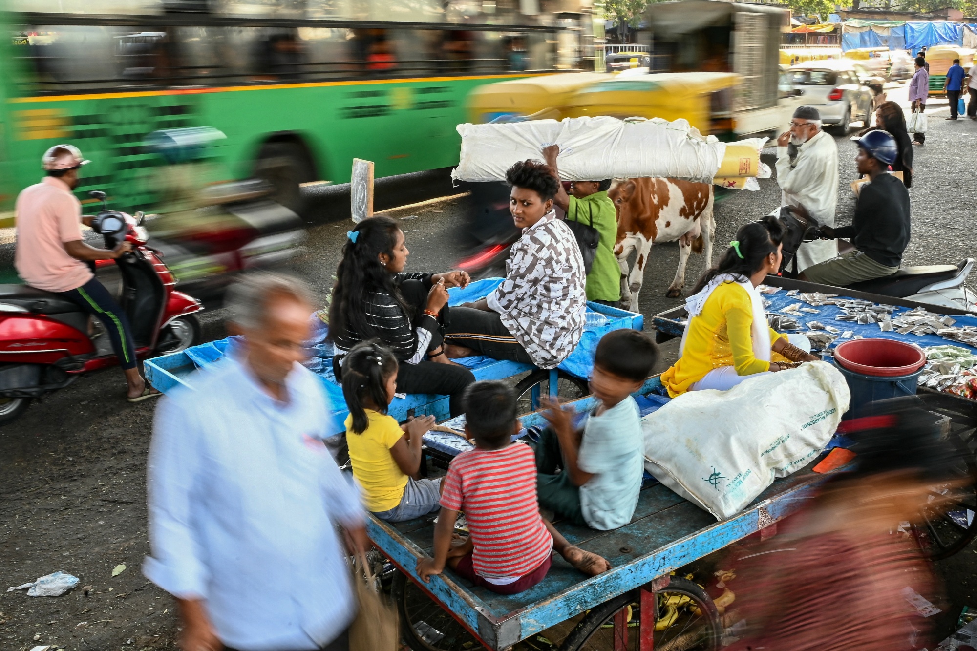 人们在4月29日的班加罗尔炎热的夏日躲在桥下避暑。摄影师:Idrees Mohammed/AFP/Getty Images
