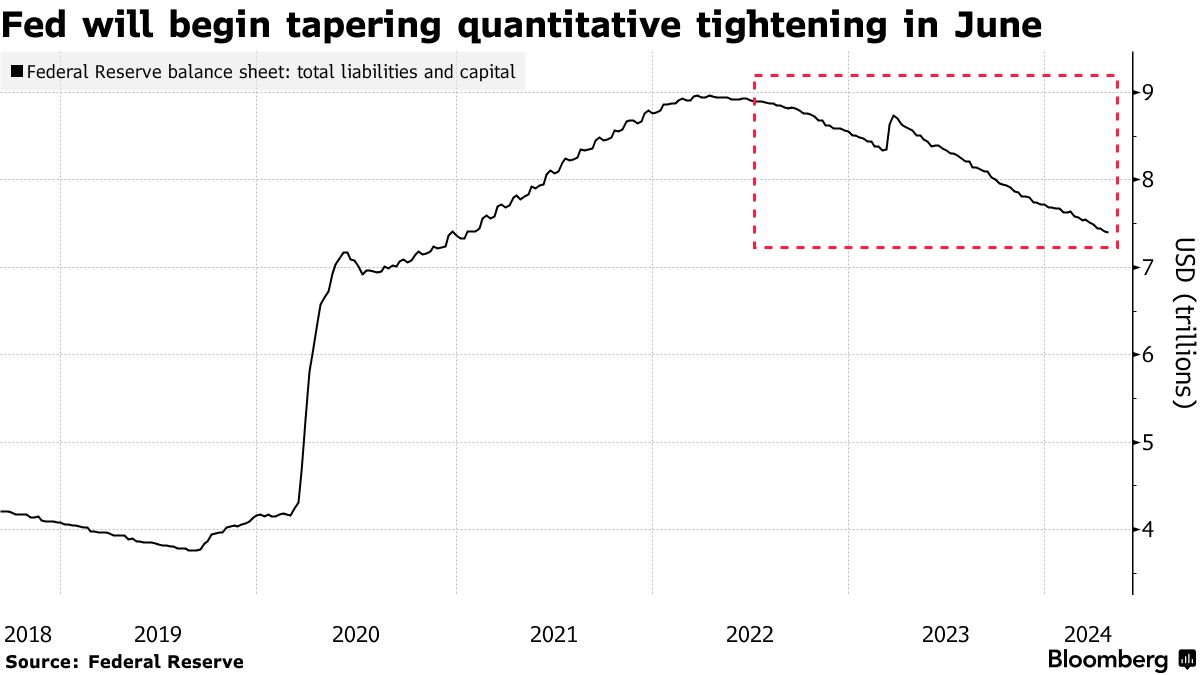 联邦储备系统将从6月开始放缓资产负债表的缩减速度 - 彭博社